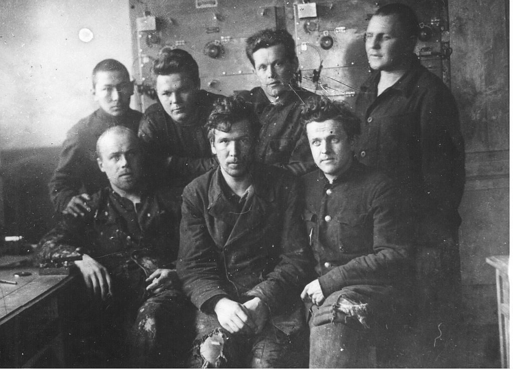 На фотографии 1939 года - радиотехники - строители радиоцентра на мысе Шмидта .