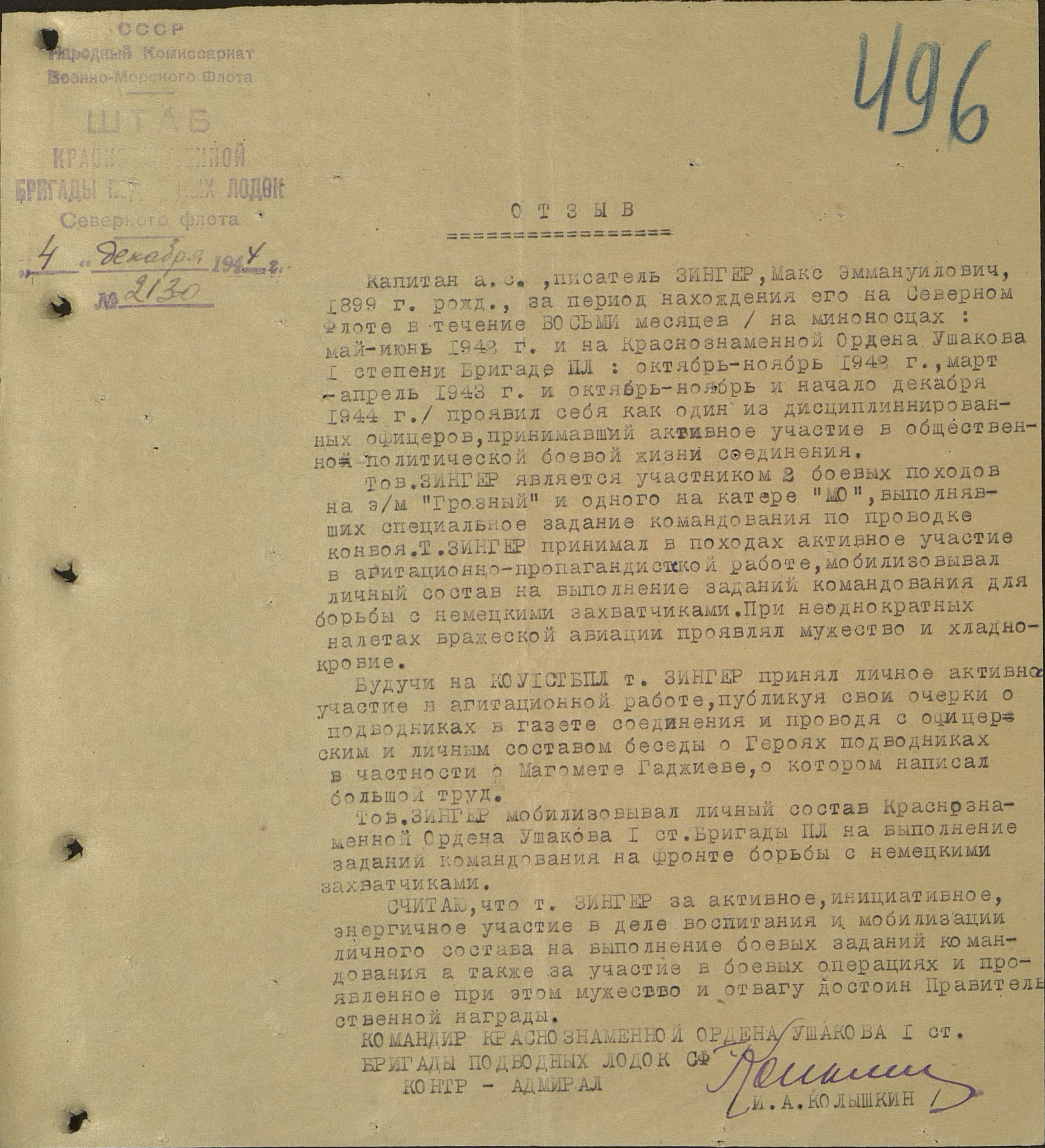 Магомед Гаджиев. (Очерк о командире-подводнике, Герое Советского Союза). М.-Л., изд. и 3-я тип. Военмориздата в Мск., 1945. 123с.