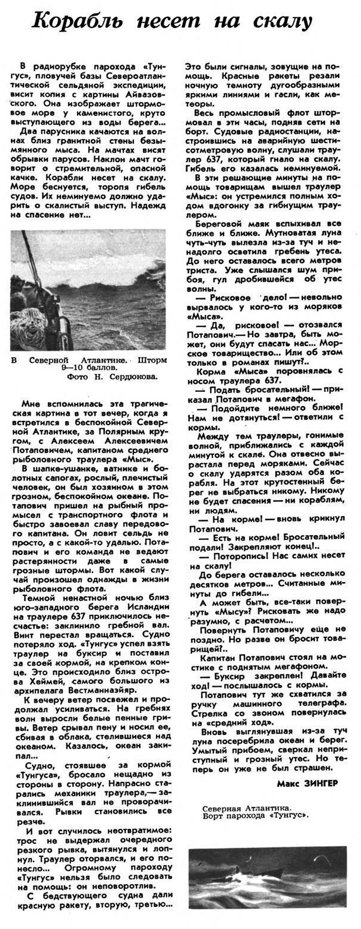 «Я не претендую на бессмертие». – Как мы тонули. Очерки. На Севере Дальнем, кн.6, 1957, с.136-140.