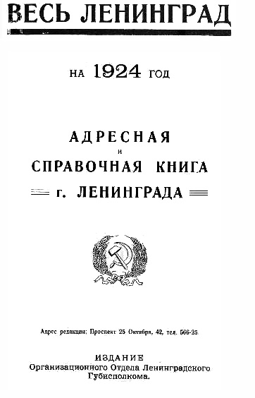 Ну и наконец в книге "Весь Ленинград на 1924 год" появилась "первая ласточка", обнадеживающая запись: