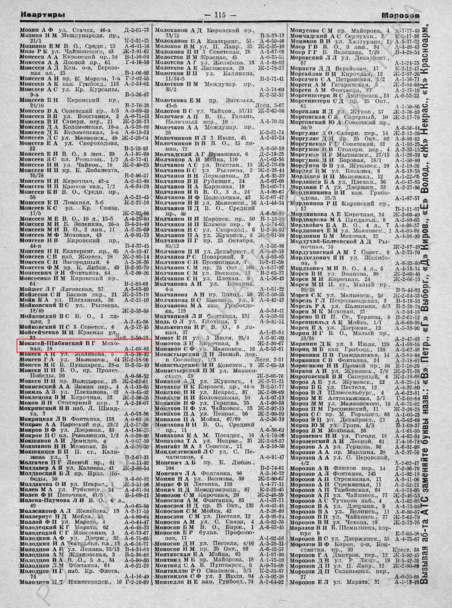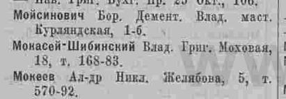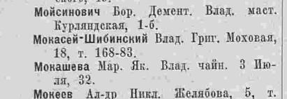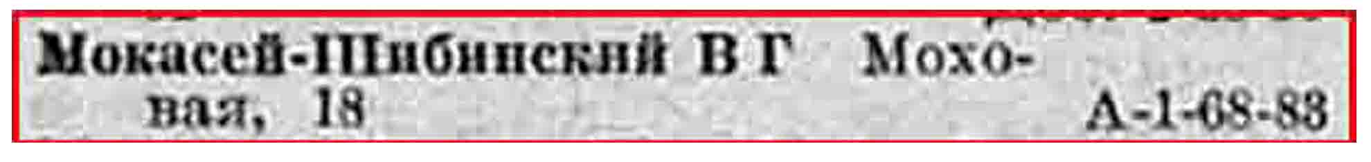Мокасей-Шибинский Влад. Григ. Моховая, 18, т.168-83.