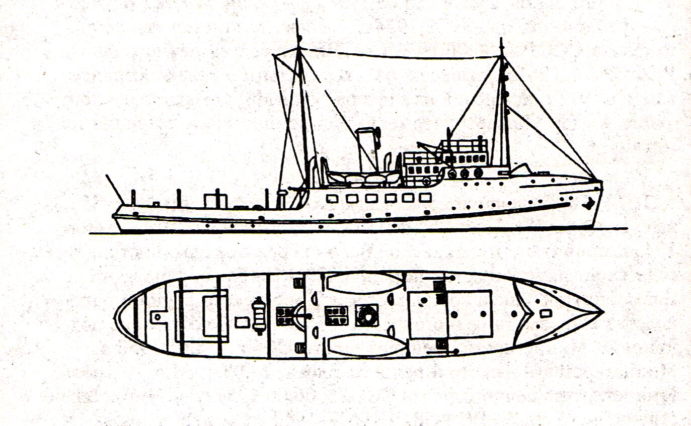 СПРАВОЧНО: Летом 1945 г. СССР получил по ленд-лизу в США 15 ледокольных речных буксиров типа "Победа" ("АG"). Все они были доставлены морским путём в Тикси (Водоизмещение 600 т; длина 53,4 м, ширина 9,3 м, осадка 2,5 м. Мощность паровой машины 800 л.с.).