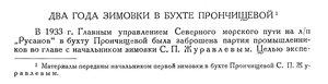 ДВА ГОДА ЗИМОВКИ В БУХТЕ ПРОНЧИЩЕВОЙ 1)