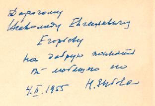 В последние годы я встречался с Н. Н. Зубовым в неофициальной обстановке. Одним из его любимых учеников и товарищей был М. М. Сомов. Приезжая вместе с Сомовым в Москву из Ленинграда по вопросам подготовки к полярным экспедициям, мы навещали Николая Николаевича у него дома. Обсуждали с ним многие планы. Он всегда давал дельные советы. Кроме того, он был гостеприимным хозяином, не терял чувства юмора даже в преклонные годы своей жизни. Помню, как осенью 1956 года, перед отправлением в антарктическую экспедицию, он позвал меня к себе домой. У него в тот вечер собрались старые друзья — общество весьма уважаемых и знаменитых людей: Г. А. Ушаков — исследователь острова Врангеля и Северной Земли, Б. Г. Чухновский — один из первых советских полярных летчиков, выполнивший первую ледовую авиаразведку и участвовавший в спасении экспедиции У. Нобиле, А. В. Ляпидевский — Герой Советского Союза № 1, летчик, участвовавший в спасении «челюскинцев», А. Д. Алексеев — Герой Советского Союза, летчик, командир самолета, участвовавший в высадке папанинцев на Северном полюсе.