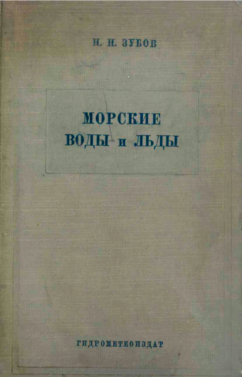 «Морские воды и льды» — так Н. Н. Зубов назвал свою первую капитальную книгу, изданную в 1938 году как учебное пособие для гидрометеорологических вузов. Этой монографии предшествовал ряд статей и книг по частным вопросам океанологии. Среди них выделяются работы «Элементарное учение о приливах в море» (1933) и «Динамический метод обработки океанологических наблюдений» (1935). Для работ Зубова характерно умение описать явление в простой и ясной форме, завершить теоретические положения четкими практическими указаниями для вычисления конкретных величин. Например, в книге «Динамический метод обработки океанологических наблюдений» после глубокого и критического анализа теории Бьеркнеса дается практическая схема расчета и построения динамических карт по данным наблюдений над температурой и соленостью на глубоководных станциях.