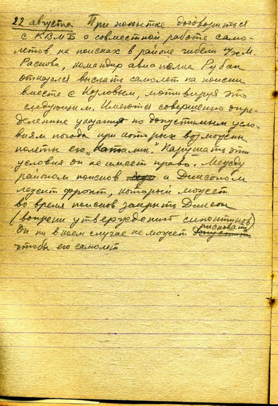 Теперь в лагере дрейфующей станции СП-2 мы жили несколько дней в одной палатке. Говорили о делах, о прошлой совместной работе. Зиму 1943/44 года мы вместе жили и работали в штабе морских операций на Диксоне, где я застрял на зимовку после плавания в навигацию 1943 года на борту судна «Мурманец».