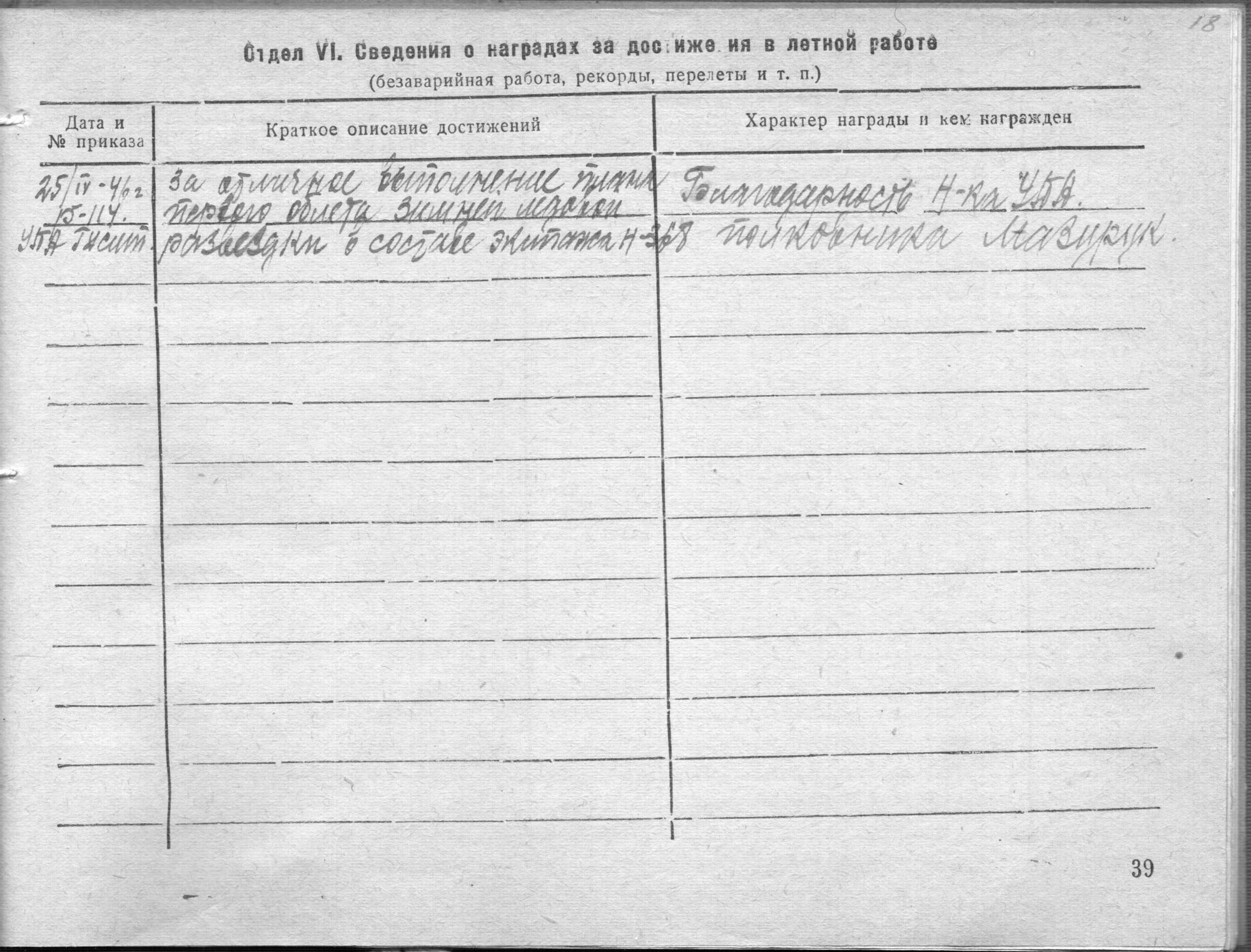 ст. 59-3 п "г" к шести годам лишения свободы, с отбыванием в исправительно-трудовых лагерях НКВД, за аварию самолёта с человеческими жертвами.