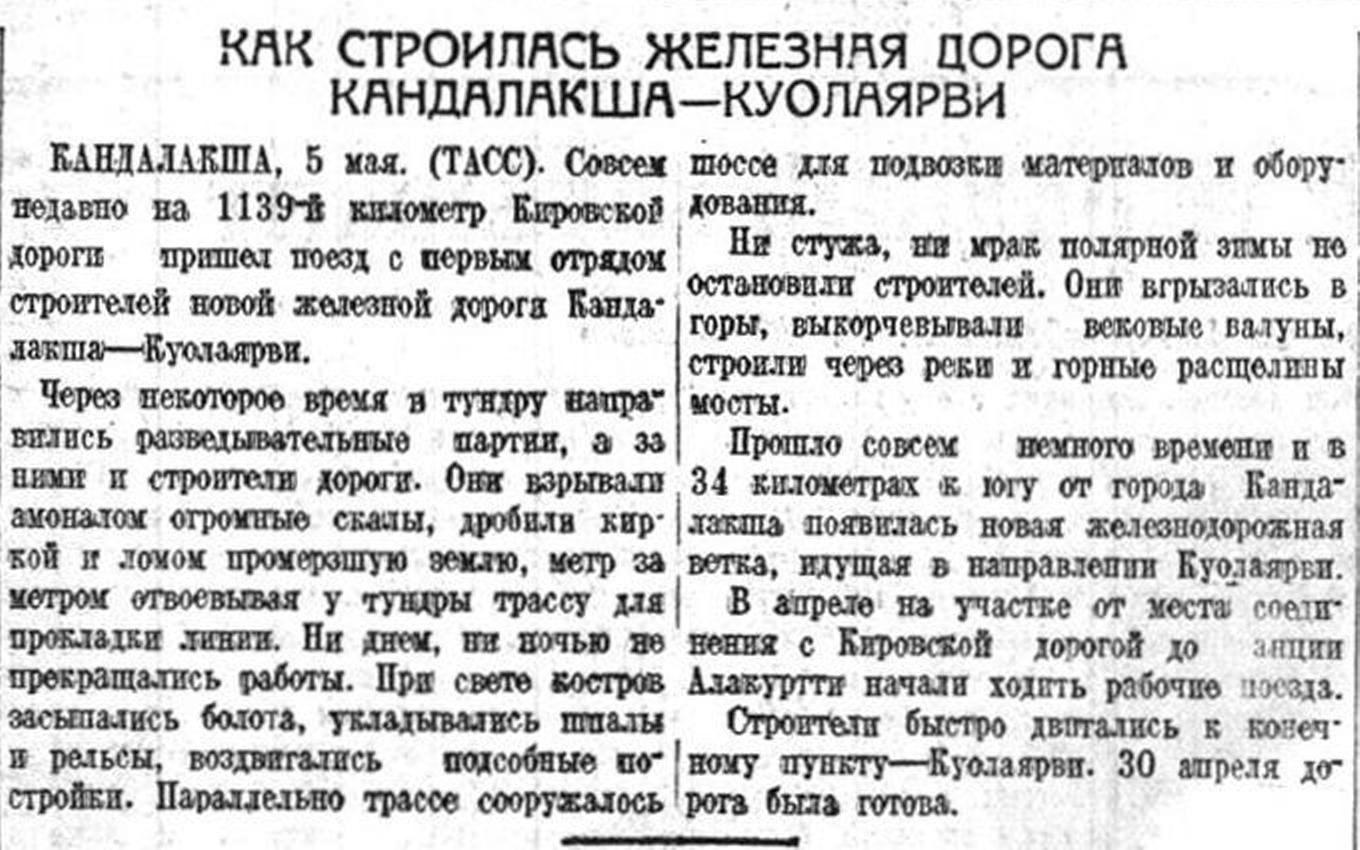 За образцовую самоотверженную работу по строительству железнодорожной магистрали КАНДАЛАКША – КУОЛАЯРВИ, Штабами "О" представлены на доску кандидатов на правительственные льготы: