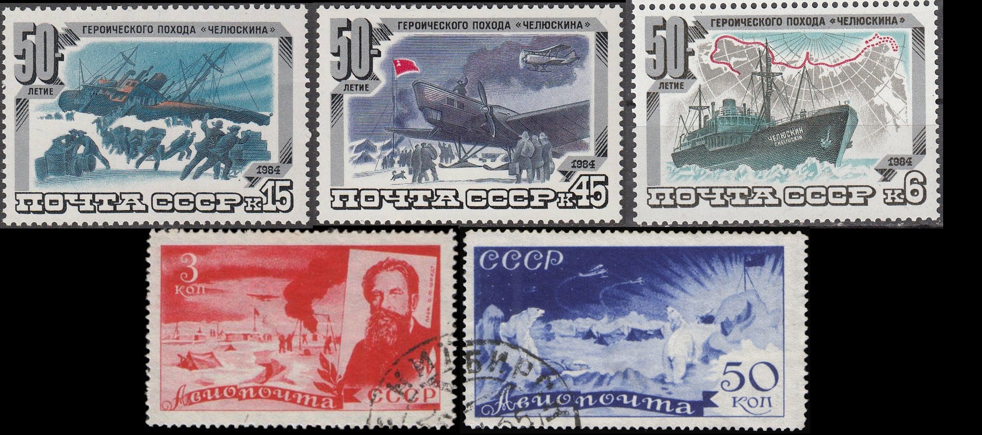 77. Почтовые марки СССР, посвящённые челюскинцам.