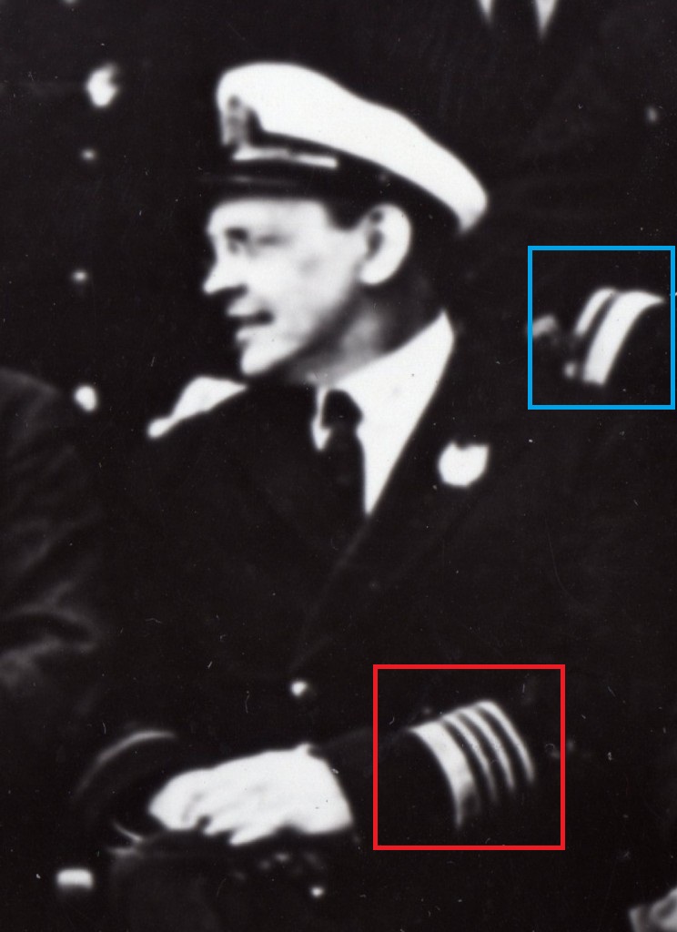 Нашивки этого персонажа, действительно, похожи на флагмана флота 2 ранга, но не видно звездочки. А на его левом плече - рукав тужурки с нашивками ГУСМП И.Д. Папанина.