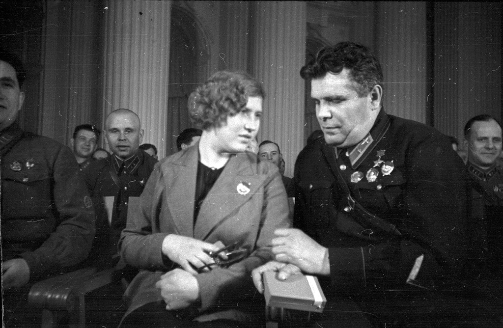 На той же церемонии рядом с женой командующего Резервной группой войск командарма 2 ранга Д.Г.Павлова - Александрой Фёдоровной (девичья фамилия - Кузнецова).