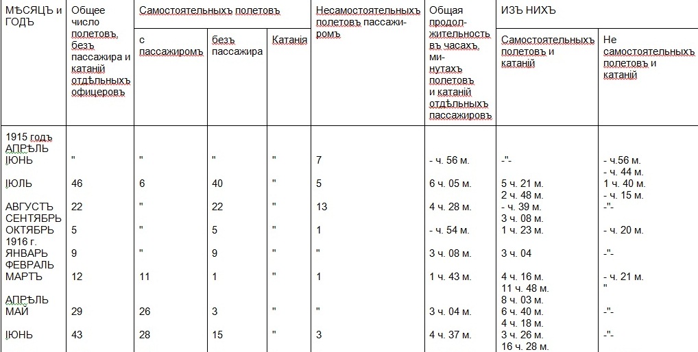 ПРИЛОЖЕНIЕ рапорты за № 267 и 268, четыре послужныхъ списка и четыре вѣдомости о полетахъ.