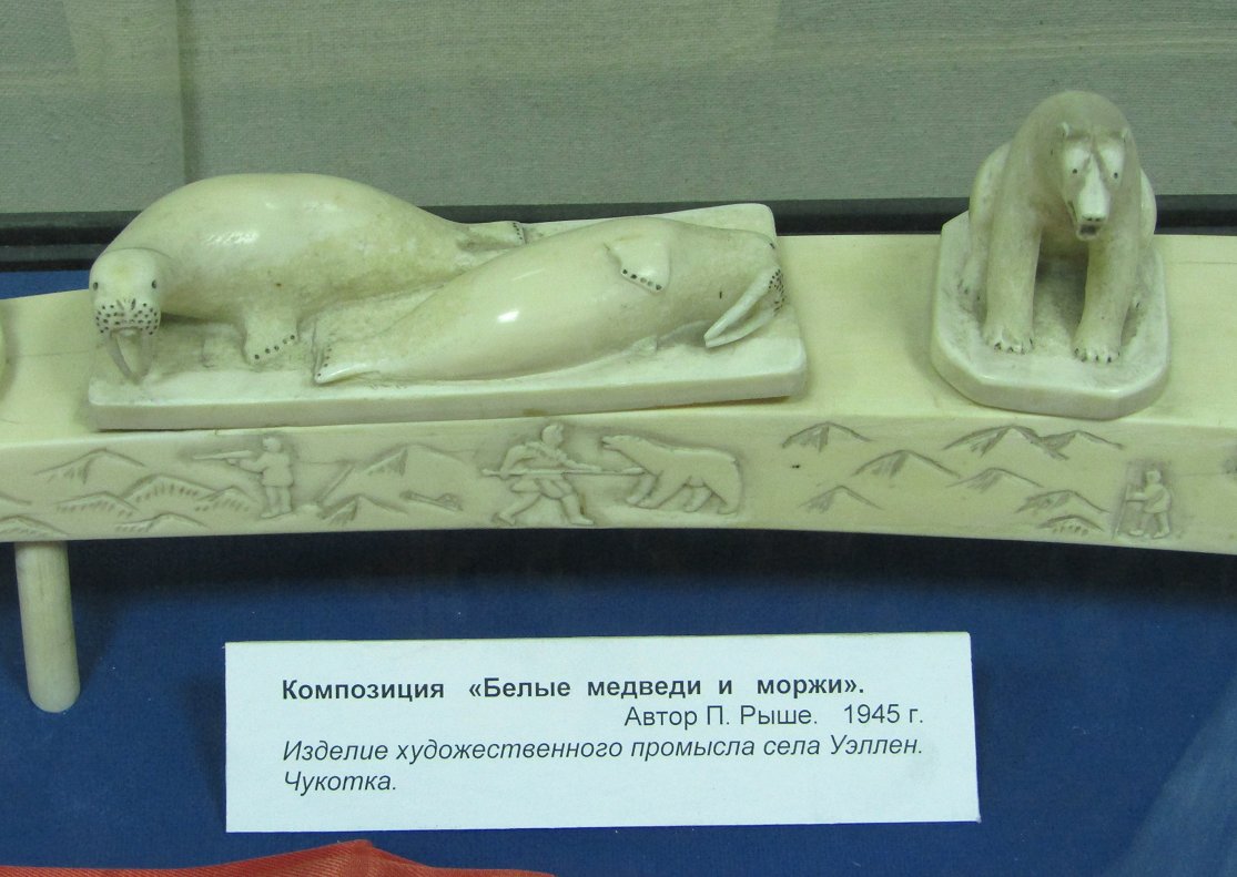 Фрагмент резного моржового бивня - одного из многочисленных полярных сувениров, собранных Папаниным за долгую жизнь.