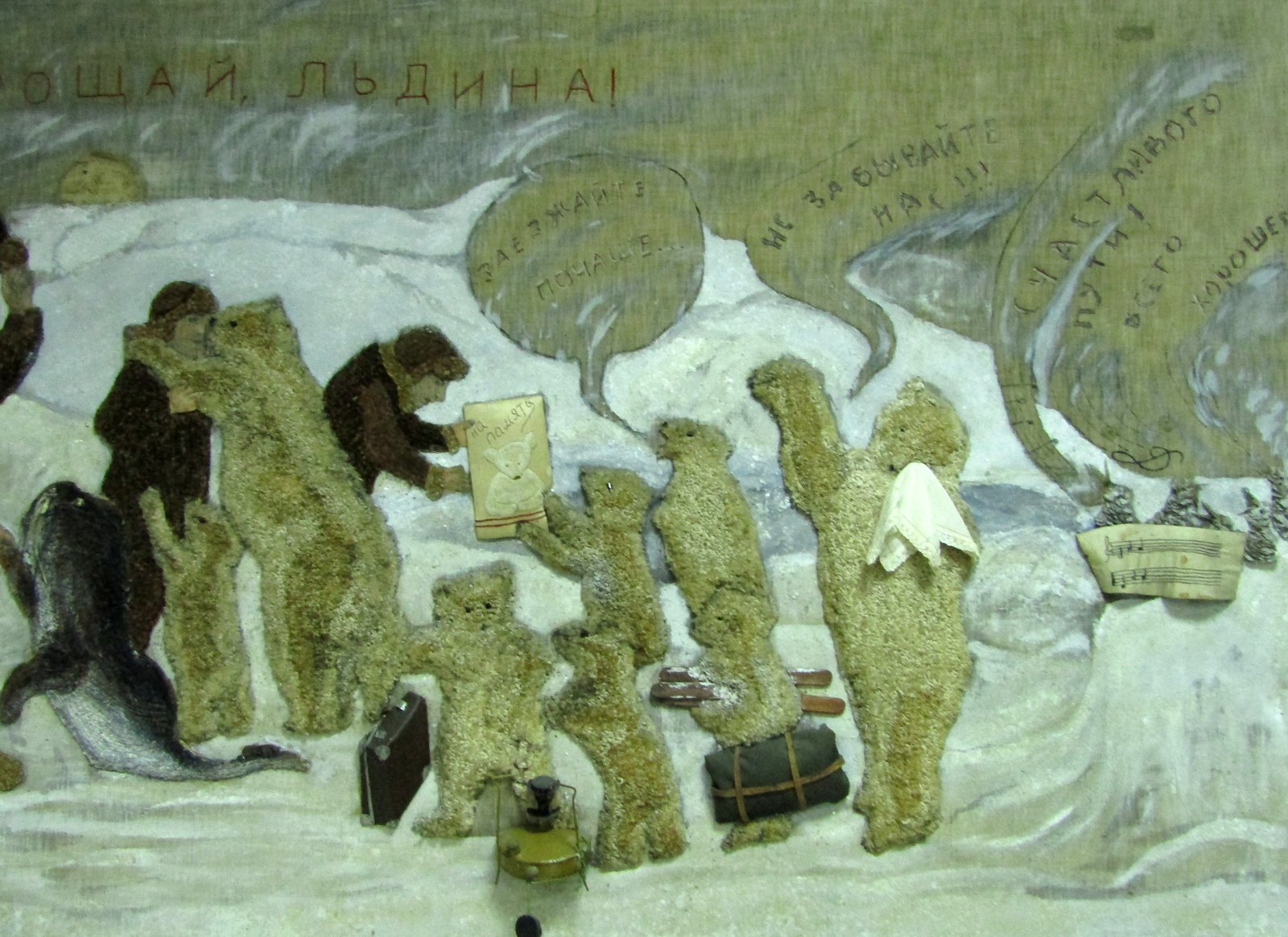 Фрагмент панно "Прощание со льдиной", сделанного папанинцам калужскими школьниками. Блестящее сочетание креативного замысла и искусного исполнения!