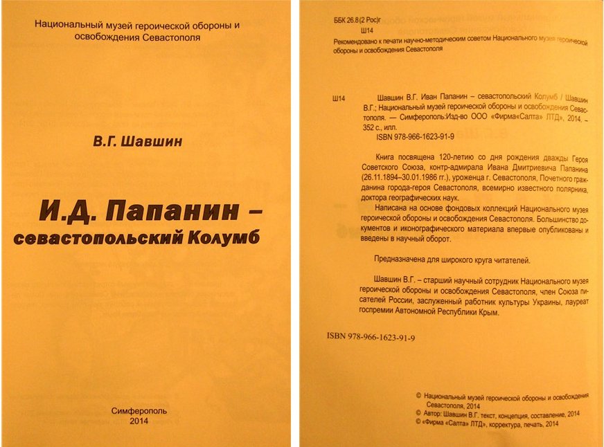 Выставка подготовлена старшим научным сотрудником Национального музея героической обороны и освобождения Севастополя, членом Союза писателей России, заслуженным работником культуры Украины, лауреатом Госпремии Автономной Республики Крым Шавшиным Владимиром Георгиевичем - слава ему! Он же является автором одноименной книги о Папанине, вышедшей в Симферополе в 2014 г.