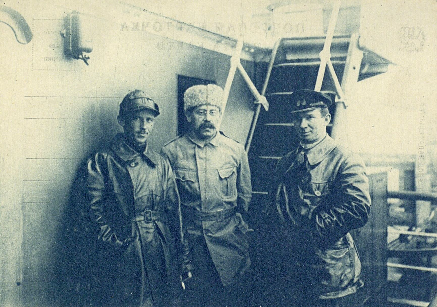 Руководящая тройка: т.т. Чухновский, Самойлович и Орас. [открытка]. - Москва : ГИЗ, [1929?]. - Глубок. ракел. печать ; 10,2 х 14,4 см. - (Ледовый поход ; № 14)