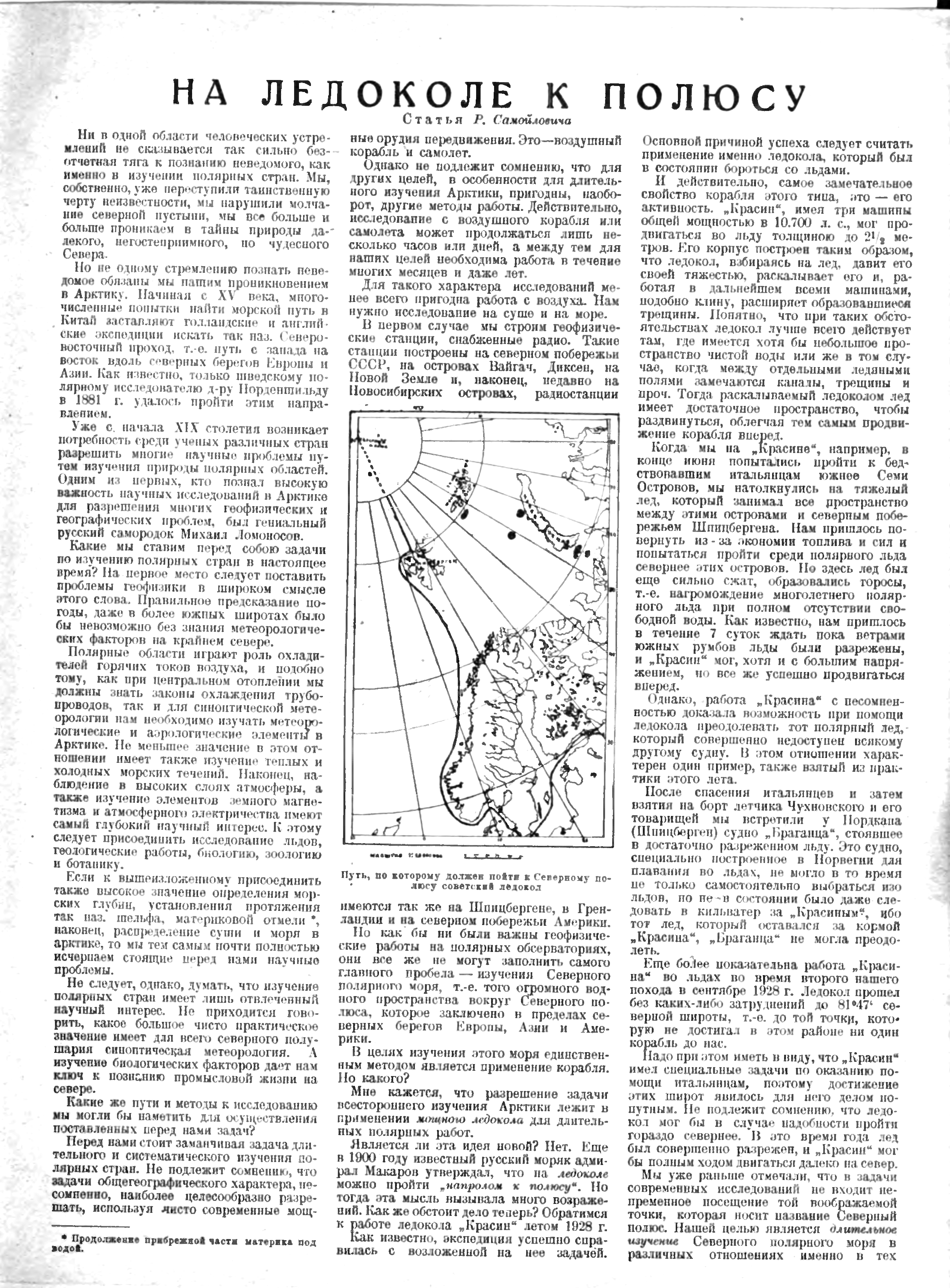 Самойлович Р. На ледоколе к полюсу//Огонек № 23 (323) 16 июня 1929
