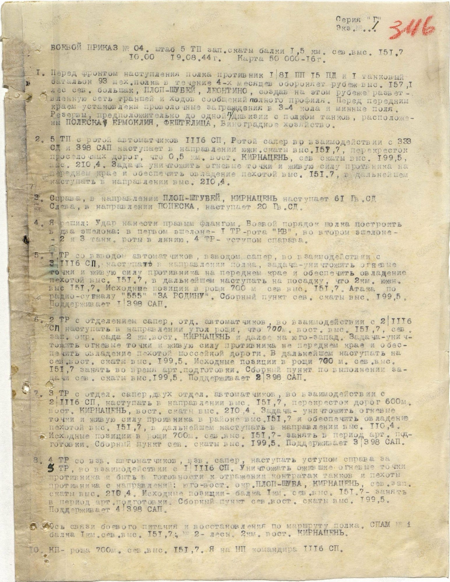 Кроме того, в боевых приказах за 1944 г. радиосигналом для начала атаки в 5-м полку значились: «555» «За РОДИНУ» (555 - первый тактический номер танка «И.Д.Папанин»!).