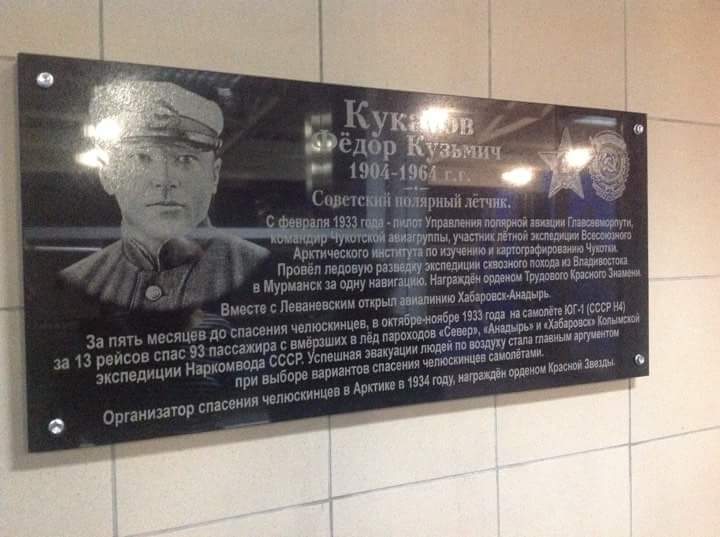 Памятная доска Ф.К. Куканову - дело хорошее. Тем не менее смущает на ней фраза "Командир Чукотской авиагруппы". В его, представленной здесь, лётной книжке это не подтверждено. В приказах того времени я тоже не встречал его назначения на эту должность. Что касается характеристики, написанной бывшим командиром Чукотской авиагруппы Конкиным через 15 лет после описываемых событий и представленной на этом форуме, то здесь есть сомнения в точности фактов.