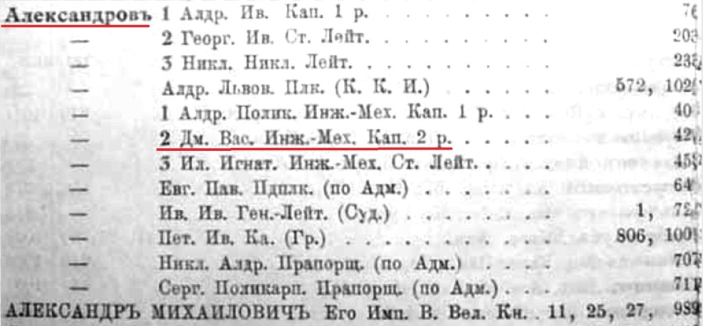 Среди воспитанников Морского инженерного училища (г. Кронштадт) с 1894 г. числится Александров Дмитрий Васильевич.