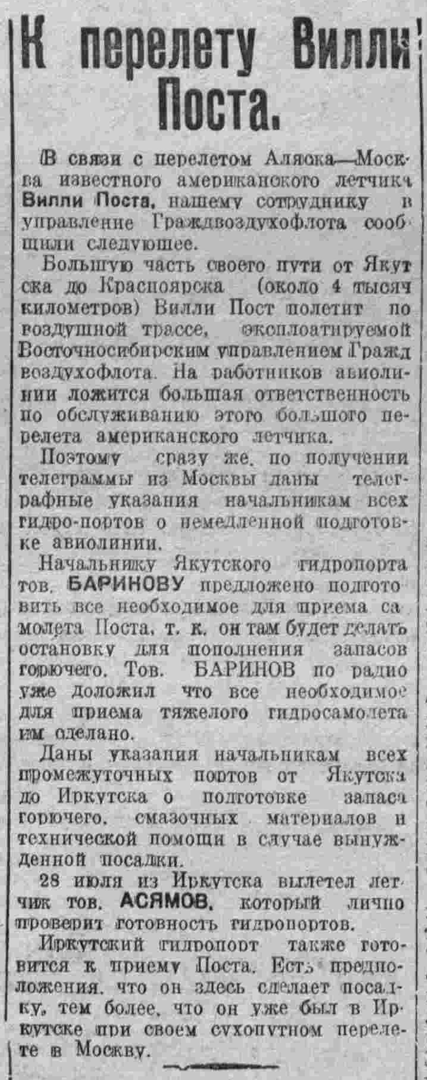 В 1933 году он с некоторым сожалением расстался с армией, имея 600 часов налёта, но и в Аэрофлоте нашлась интересная лётная работа…