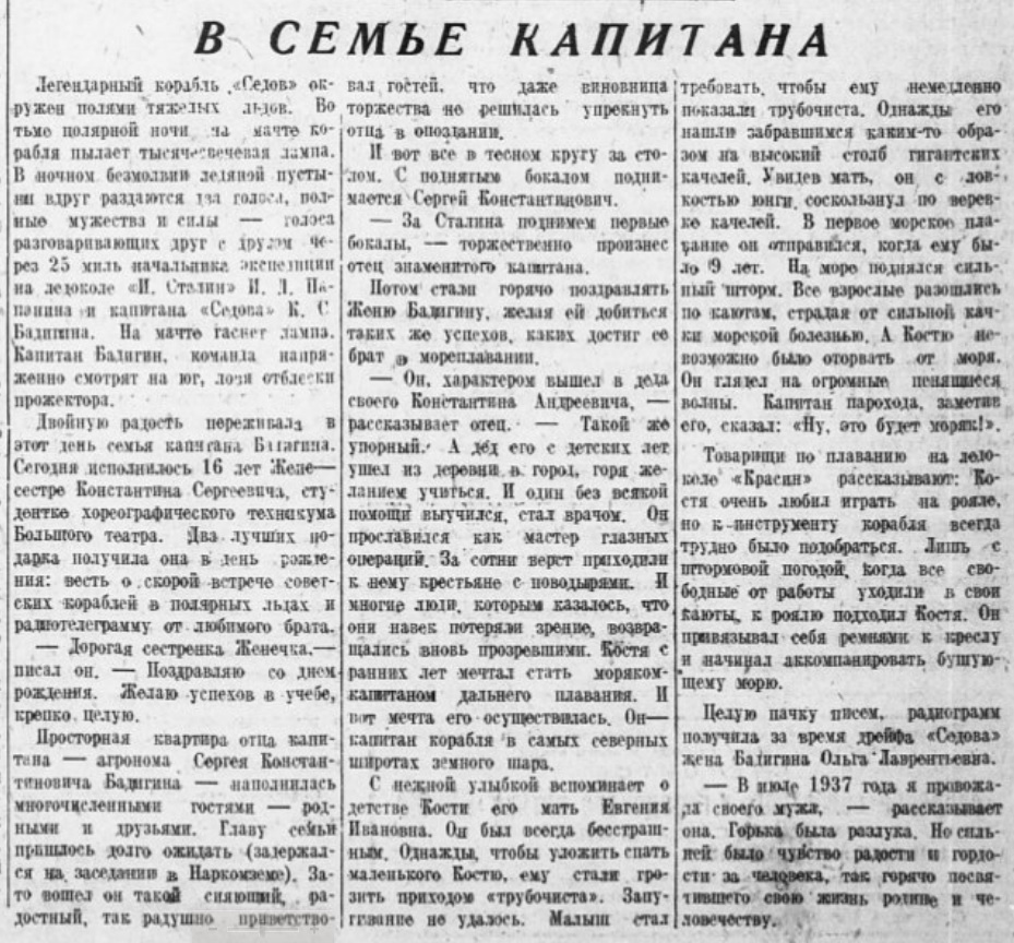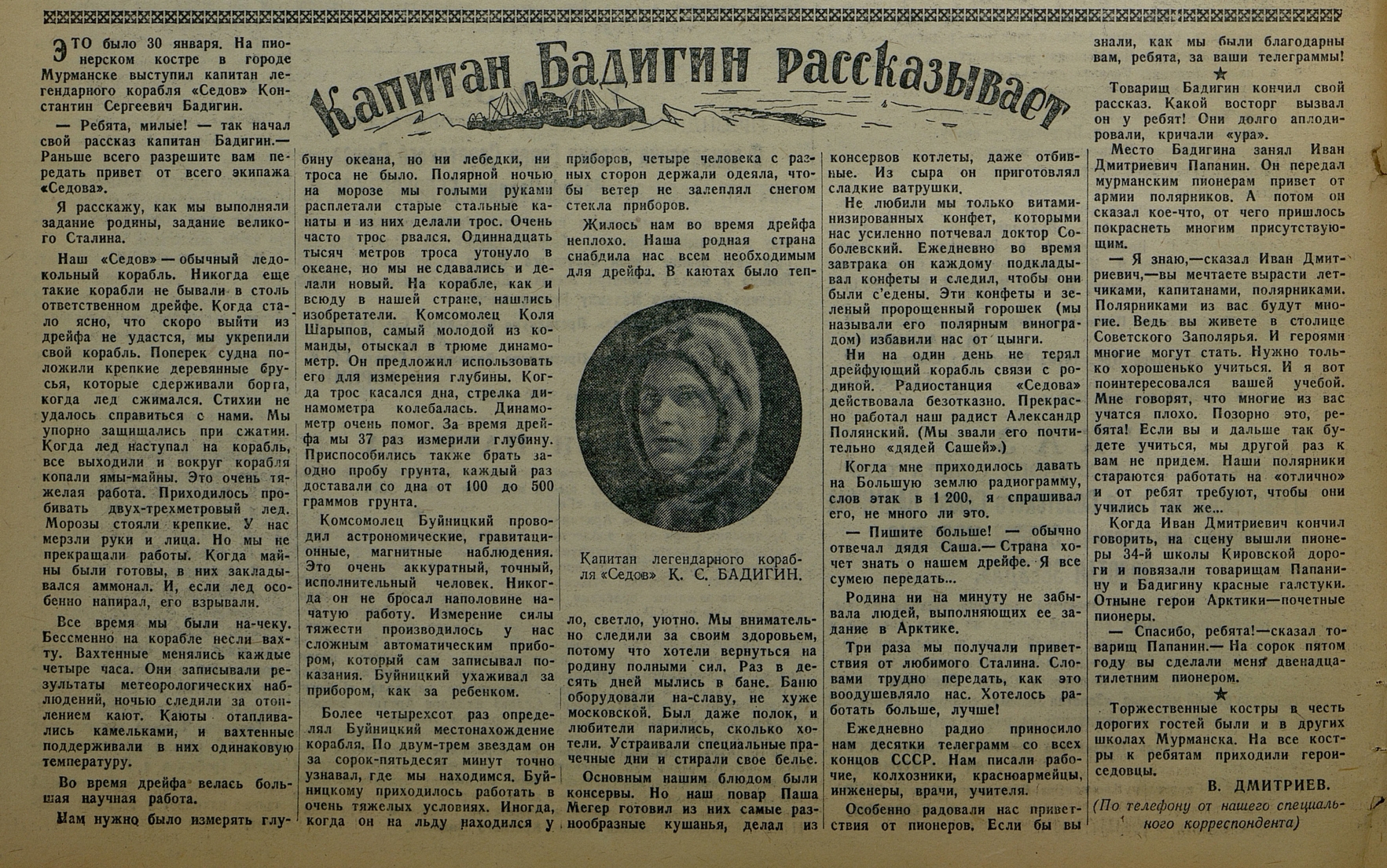 Дмитриев В.Капитан Бадигин рассказывает//Пионерская правда 4 февраля 1940 №17 (2364)