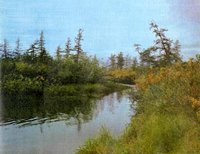 Дул небольшой норд-ост. Хатанга здесь могуча и полноводна. Ширина ее достигает нескольких километров. Иногда река разделяется на протоки большими островами.