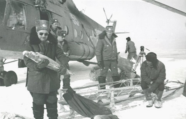 апрель 1982 г., В.Г.Волович на съёмках фильма «Район бедствия – Арктика»