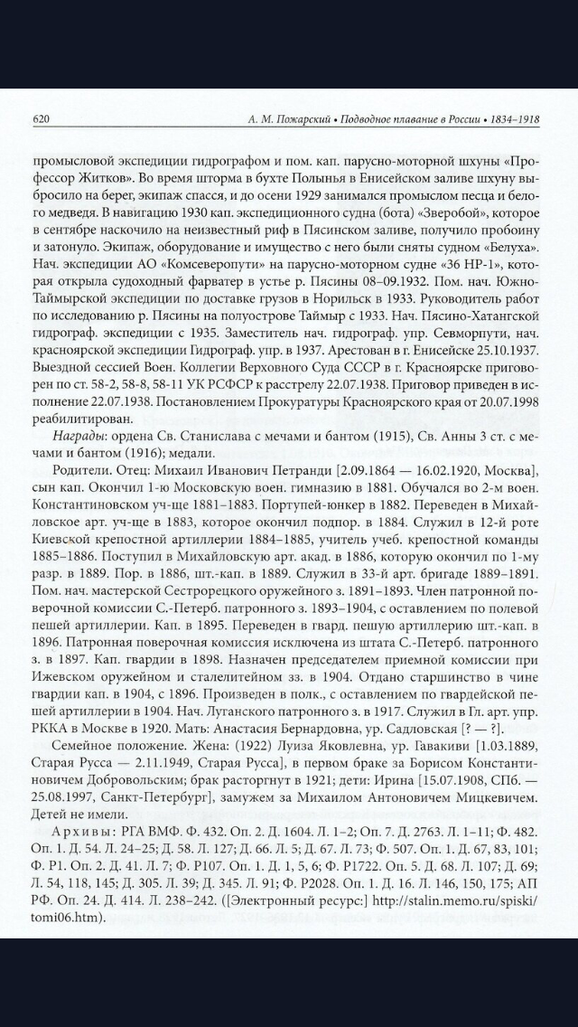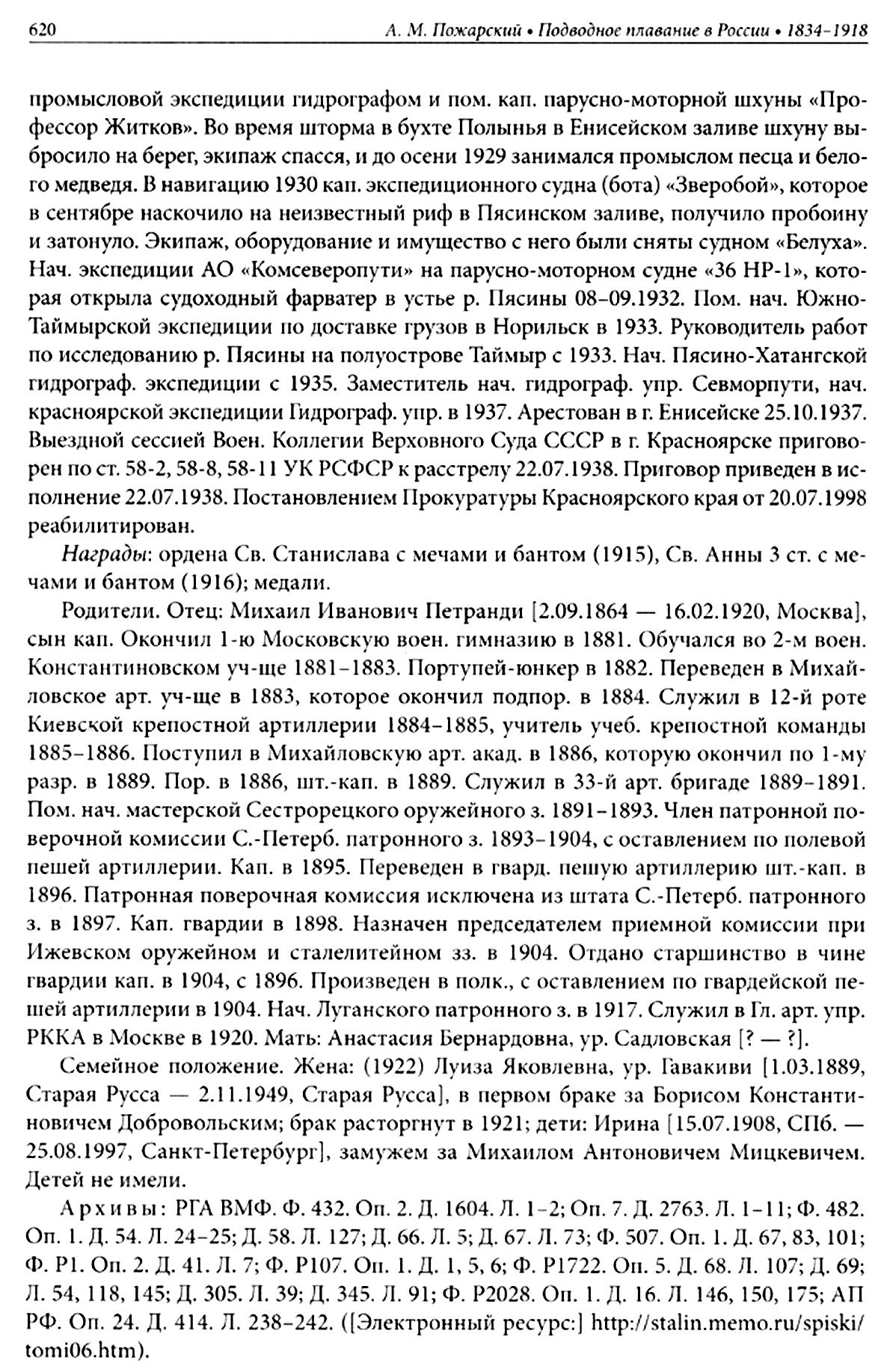 ПОЖАРСКИЙ А. М. "Подводное плавание в России. 1834-1918 гг. Биографический справочник" (СПб.: "Блиц", 2011. 1024 с.)