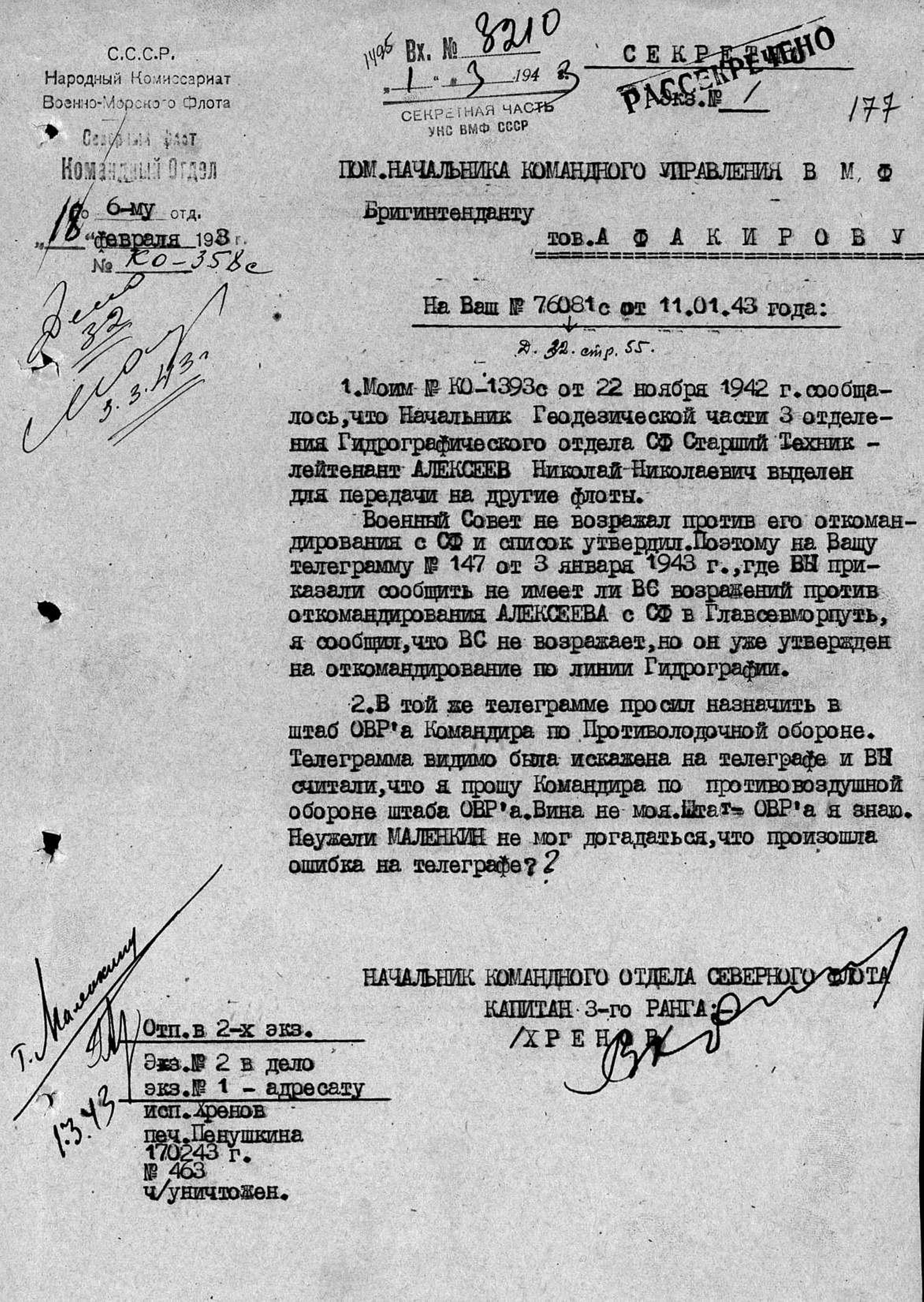 Посчитав, что его боевых и производственных заслуг перед родиной достаточно, Алексеев расслабился, решил вступить в партию и написал в Министерство госбезопасности письмо, в котором признался в службе в Белой армии, смене документов и т.д. Реакция родины была быстрой и, наверное, предсказуемой. В январе 1951 года его арестовали и по решению особого совещания отправили в ссылку на 5 лет в Кзыл-Орду. В ссылке Алексеев работал инженером-гидрометром в Облводхозе, получил прекрасные характеристики. 5 мая 1953 года он был освобожден по амнистии, вернулся на прежнее место и работал там до выхода на пенсию в 1961 году.