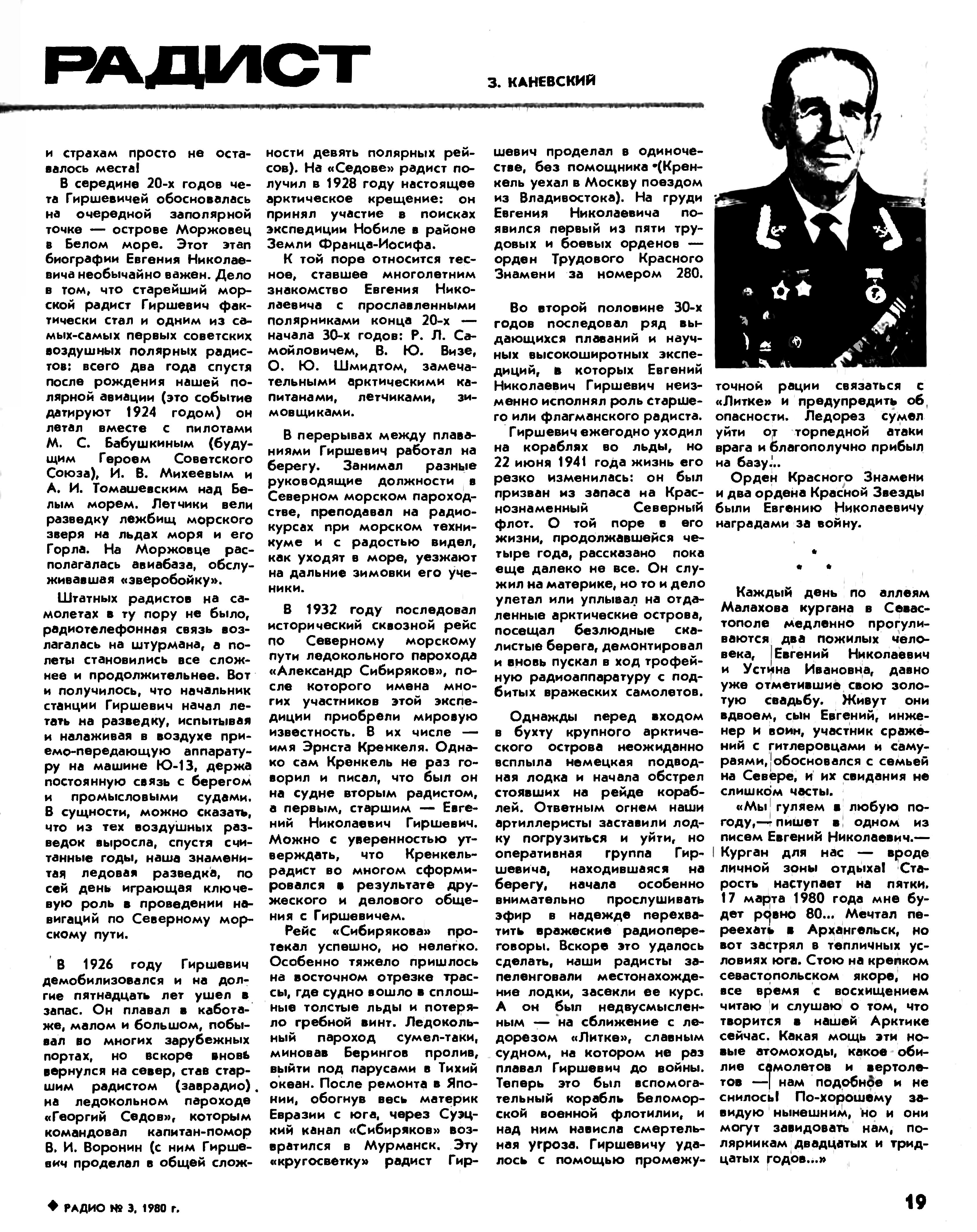 Из истории освоения Арктики:Полярный радист Евгений Гиршевич© Валентина Власова, историк