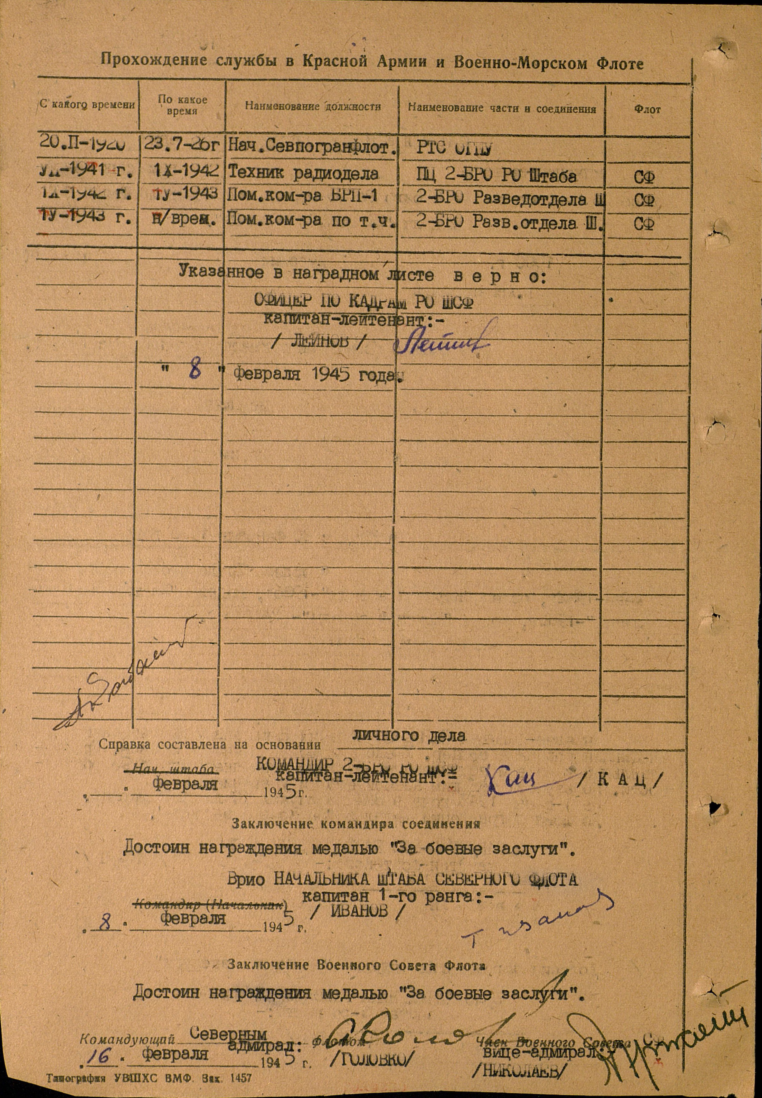 Работал он главным старшиной радистов на знаменитой Исакогорской радиостанции (Белая гора), которая обеспечивала связь с кораблями в Белом, Баренцевом и Карском морях. Как вспоминает радист-полярник В. В. Ходов, именно «её радисты на протяжении двух десятилетий были законодателями стиля морской радиосвязи на Крайнем Севере. Этот стиль работы в эфире отличался предельной четкостью и корректностью, а «почерк» свидетельствовал о филигранном мастерстве»{1}.