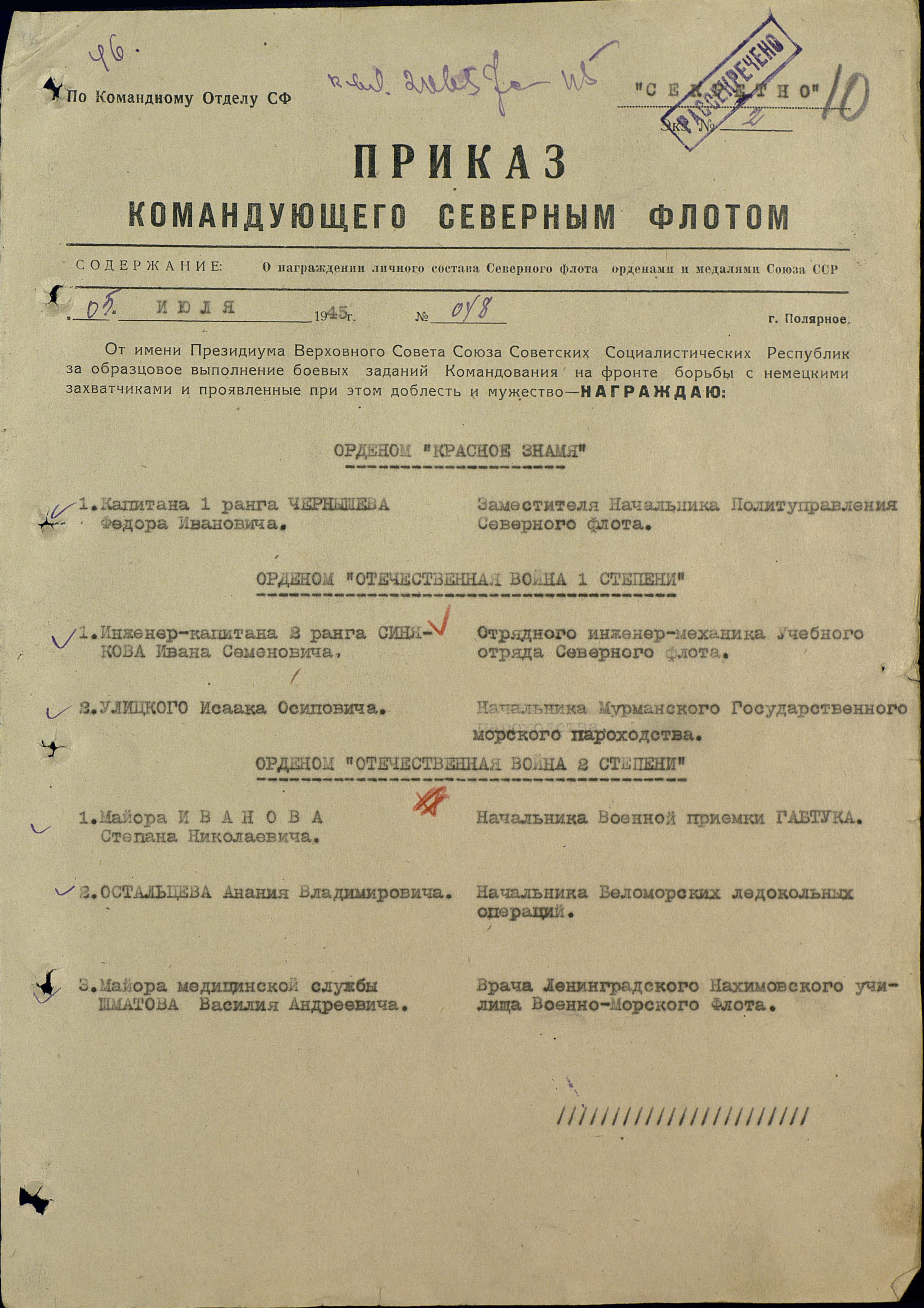 Приказ или указ: Архив ЦВМА фонд 3 опись 1 единица хранения 1220