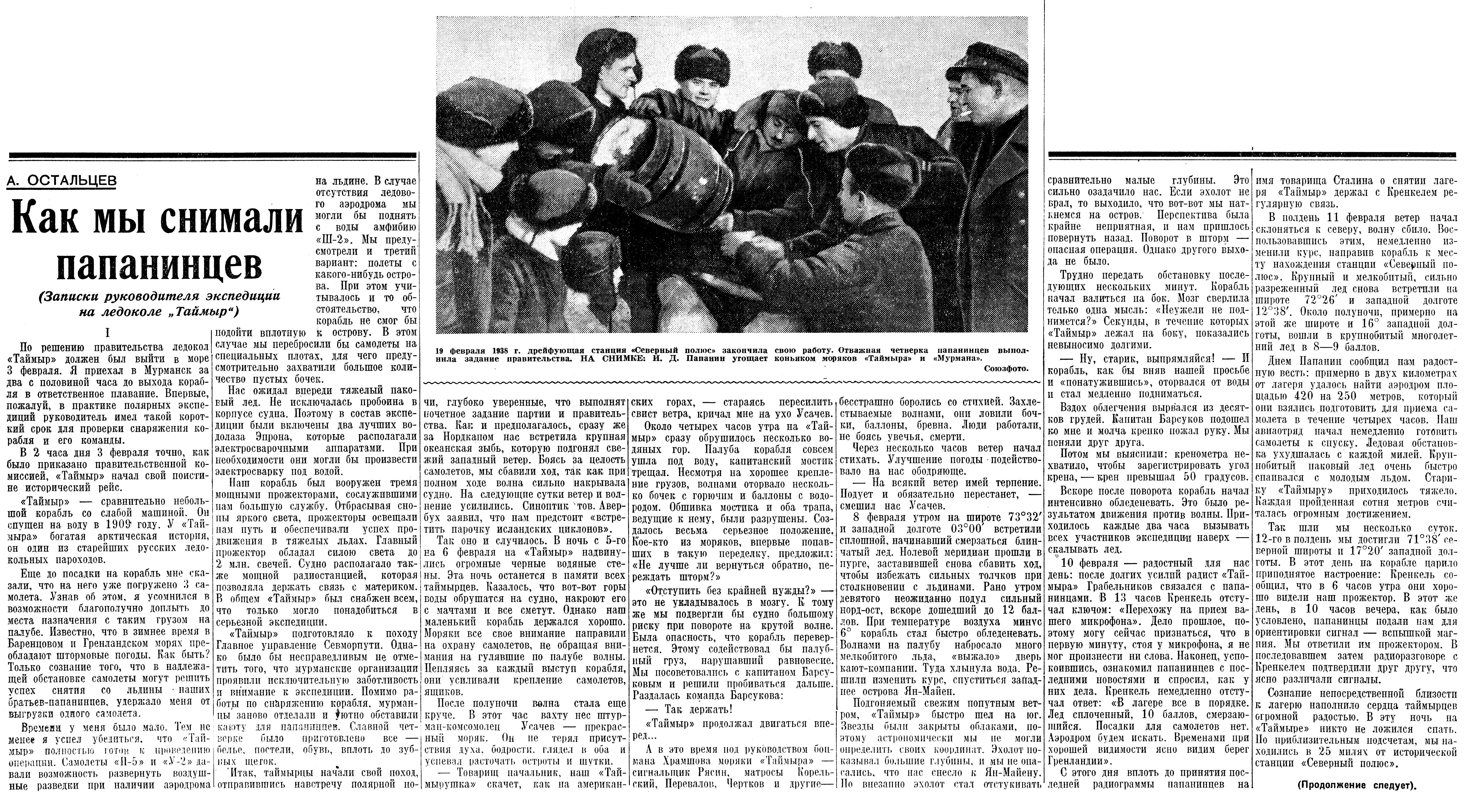 Отважные руководители экспедиций на ледоколах. №43 // Советская Сибирь : Газета. — Новосибирск: Советская Сибирь, 22 февраля 1938.