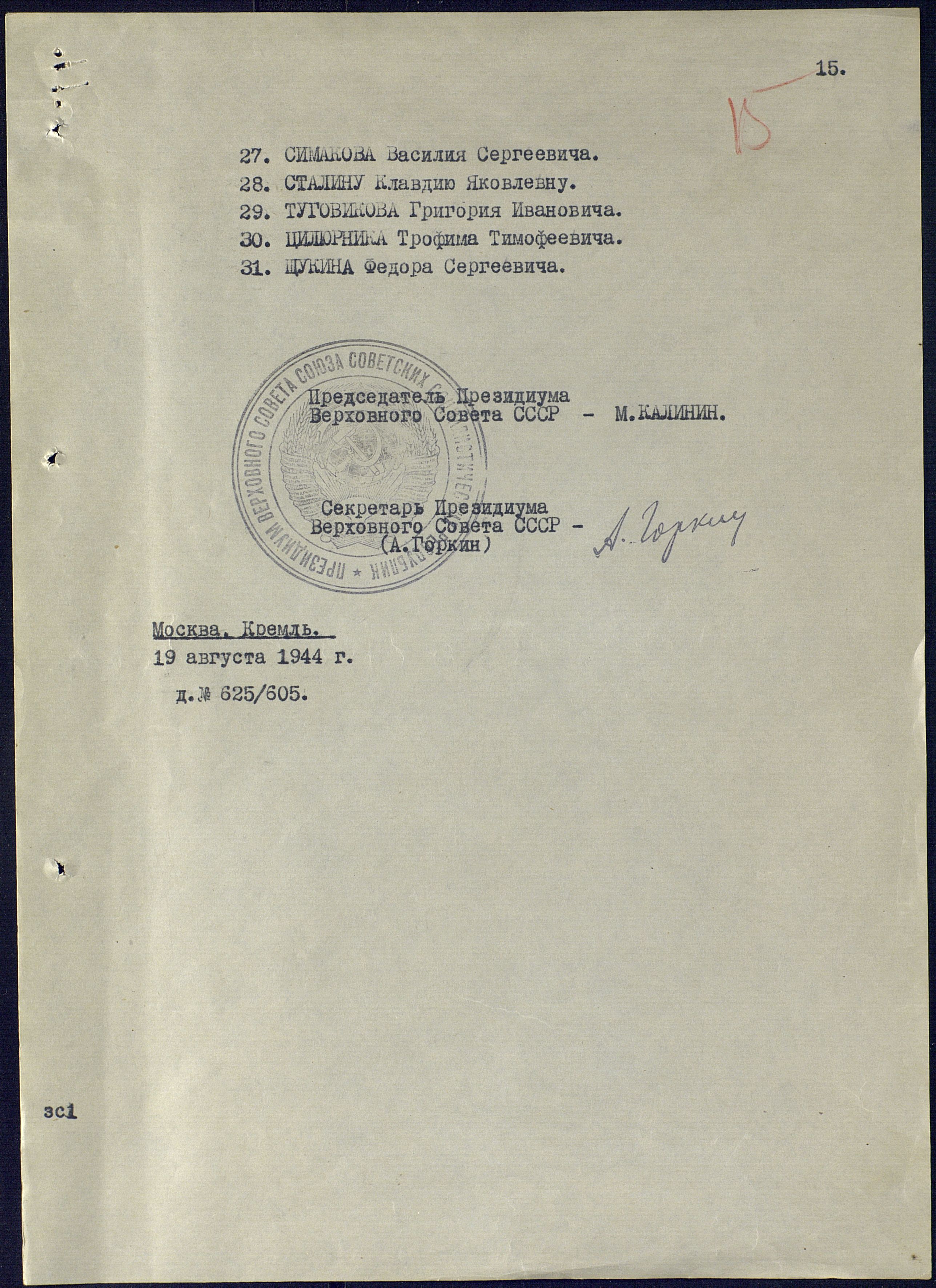 место призыва: Приказ НКО № 0047 от 09.07.41г.