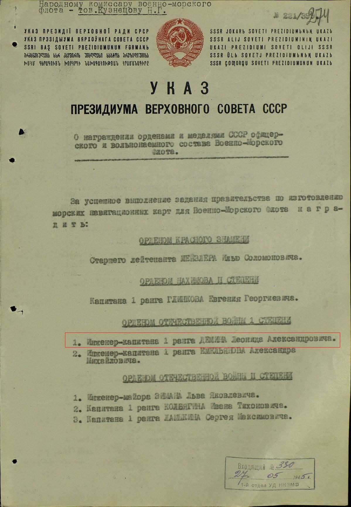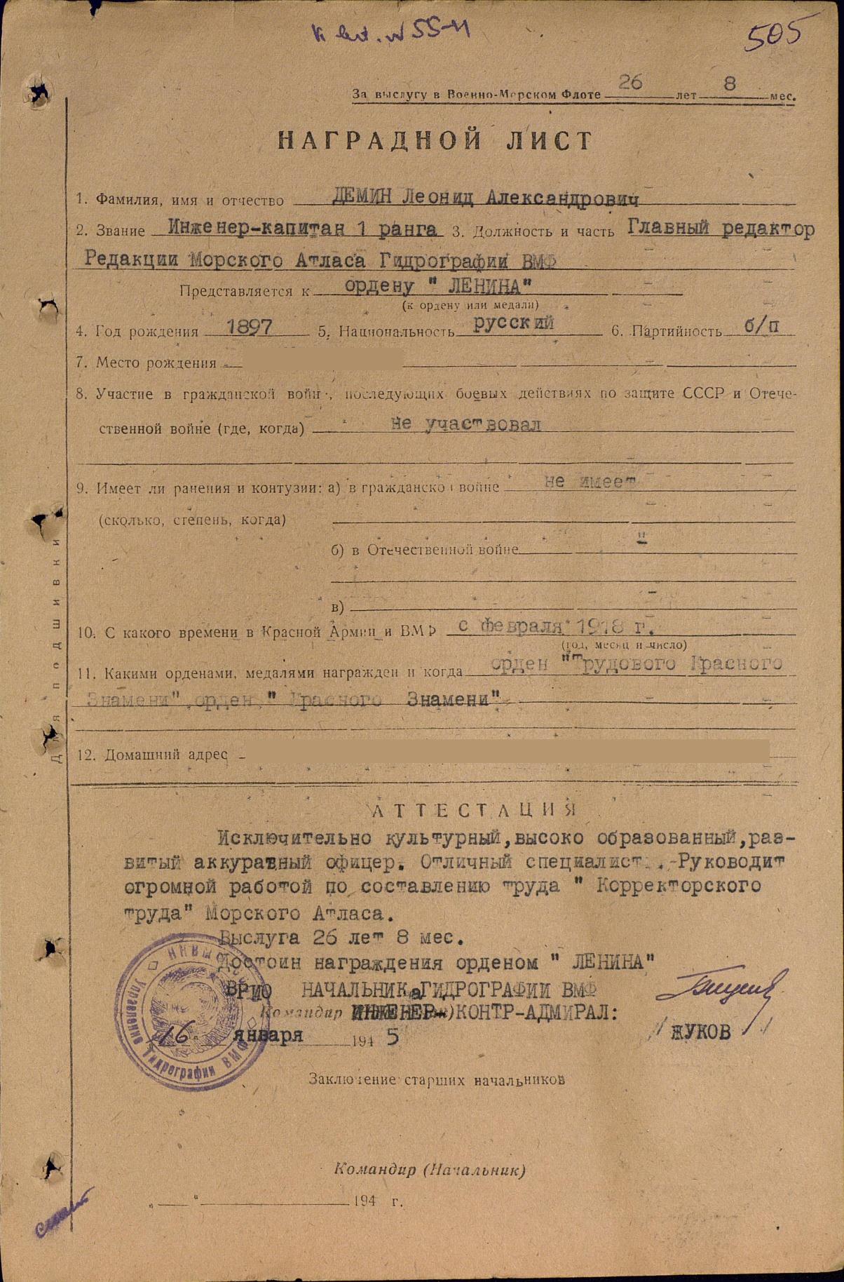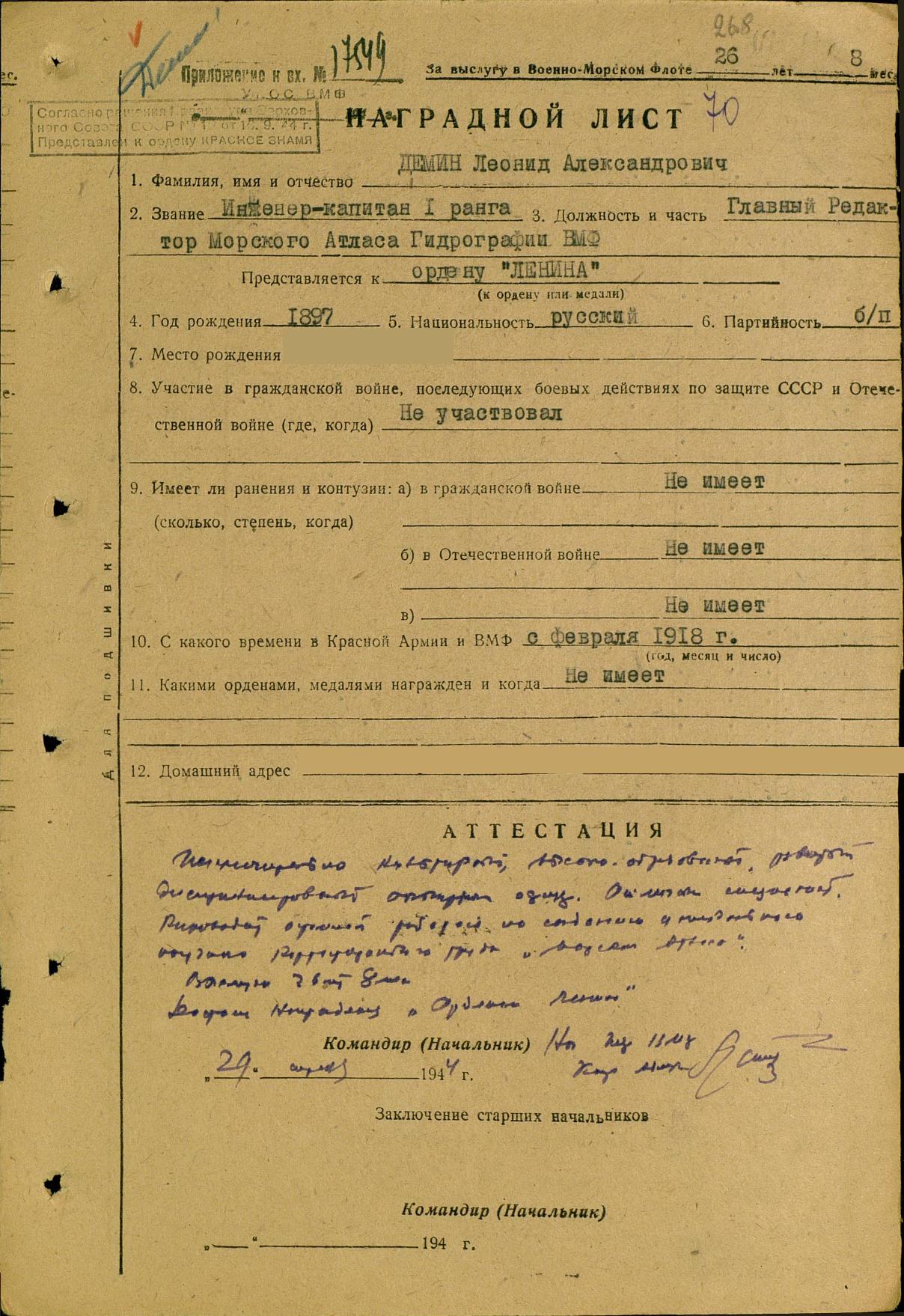 Демин Леонид Александрович, 1893 – 1973. Закончил Херсонское морское училище. По окончании им всем присвоили офицерские звания и по случаю войны, мобилизовали. Это был 1917-ый год. Первое место службы – Аврора. Но недолго дед служил…