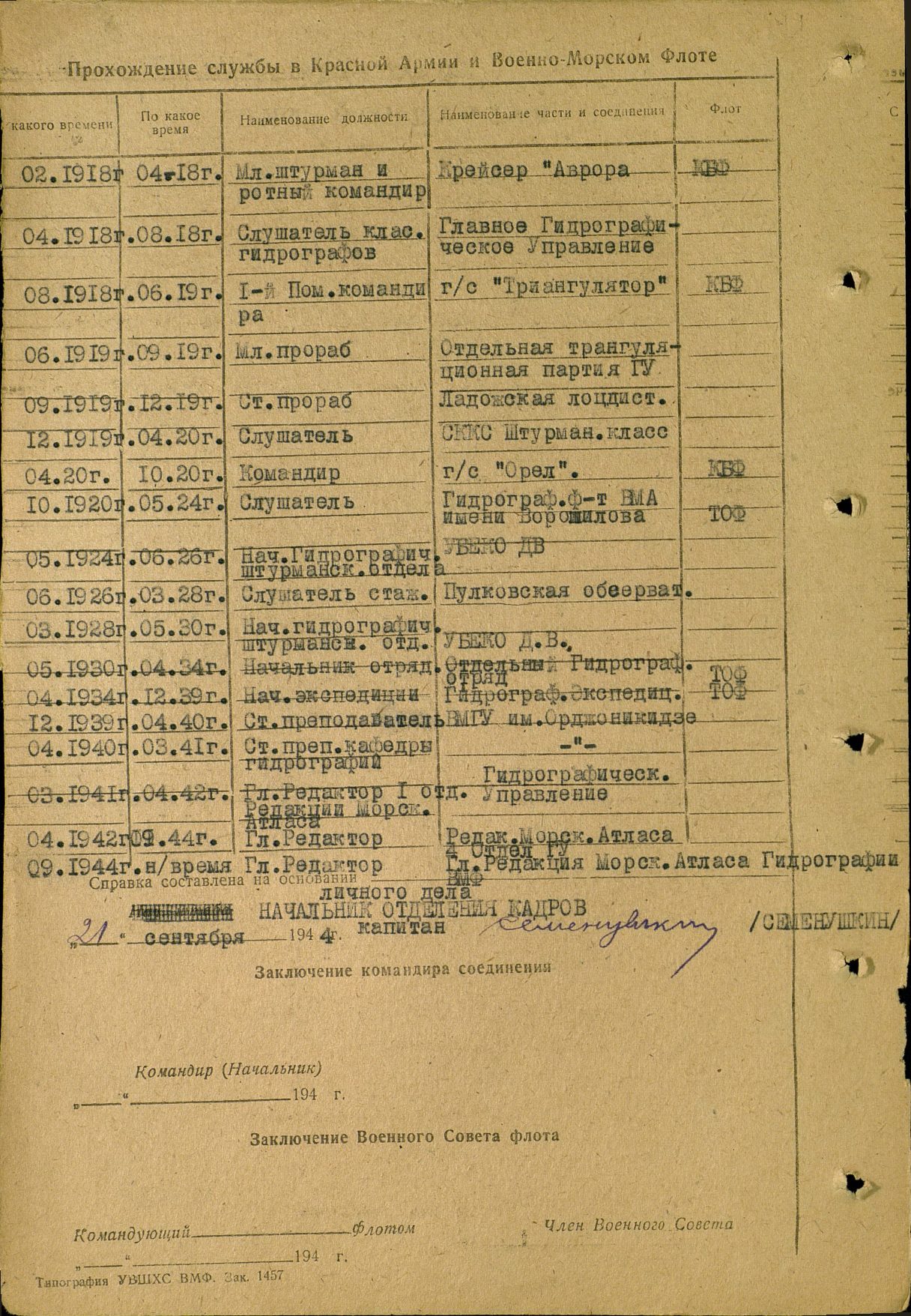 Дальний ВостокДед родом из Тамбовской губернии. Родители его были землевладельцы. Не помещики, они сады разводили. Отец его рано умер, В детстве много читал, увлекся морем и потому поступил в Херсонское училище. Практику они проходили каждый год, дед много где был. Потом учился в Пулковской обсерватории , принимал участи в картографировании Каспийского моря. С 23-го года он на Дальнем Востоке.
