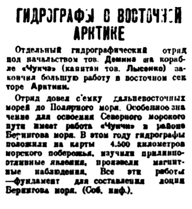 В 20-е годы мой дед занимался тем, что участвовал в составлении новых карт побережья Японского, Охотского и Чукотского морей. За 15 лет они составили новую карту. Они работали, а снабженцы, как рассказывал дед, и тогда работали чрезвычайно плохо. Как в фильме «начальник Чукотки», стреляли песцов, приходилось самим себя обеспечивать. Японцы, американцы, канадцы, — все, кто угодно, ходили туда как к себе домой, границы не было. Иностранцы привозили им, когда это было нужно, горючее, продовольствие и даже оружие, если это требовалось.