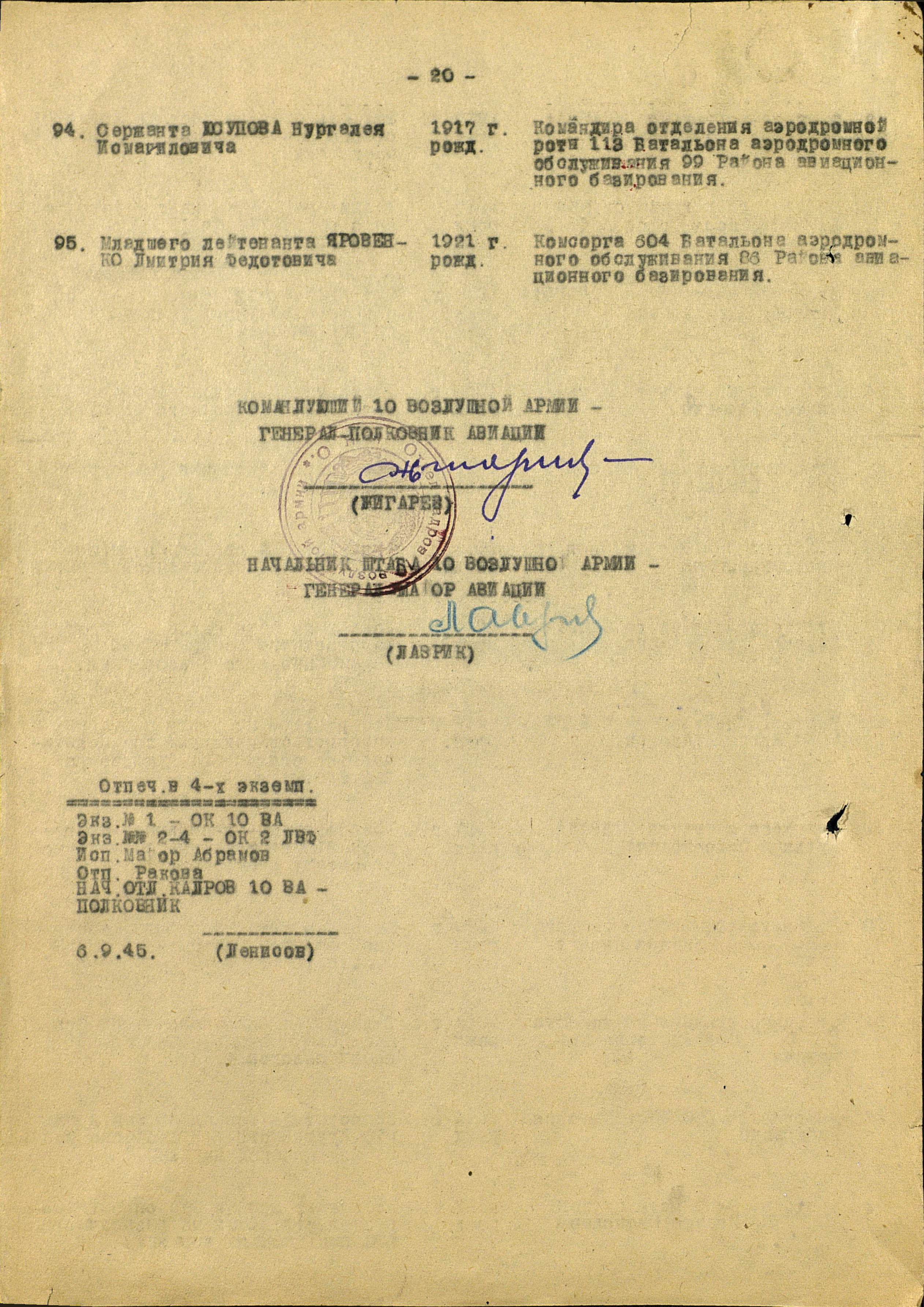 Общий налет т. Деркунского на 28 июня 1944 года составляет: 4100 часов и 778000 километров в том числе на самолете ПС-30 - 650 ч.