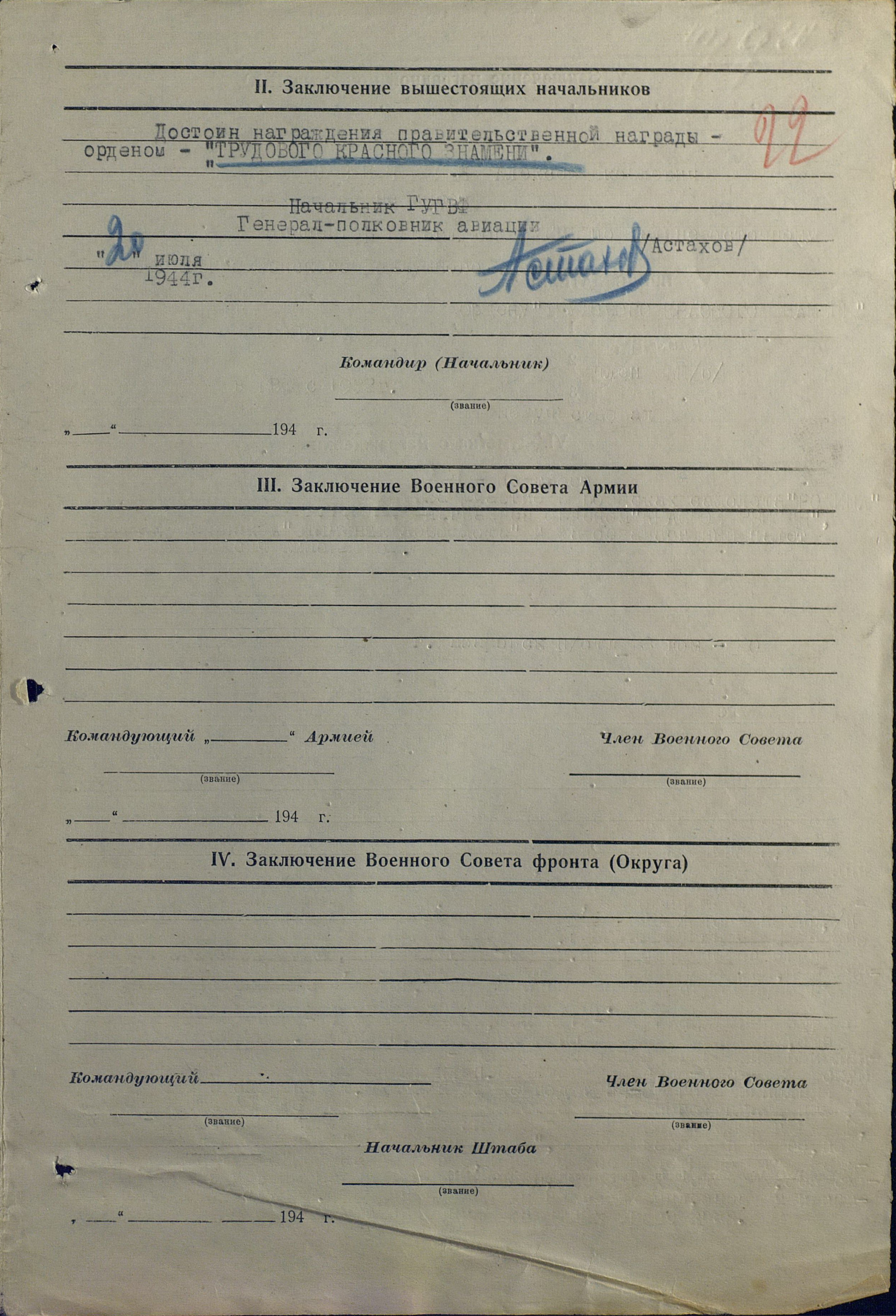 Генерал-полковник авиации - подпись - (АСТАХОВ)