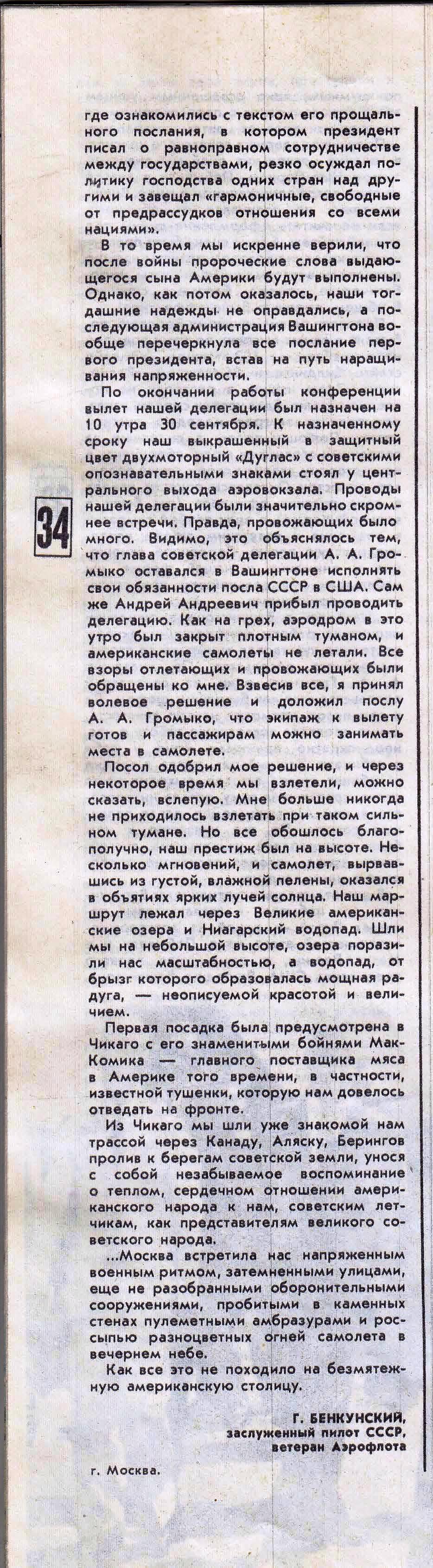 Статья Г.С. Бенкунского из журнала "Гражданская авиация" № 1, 1991 г.