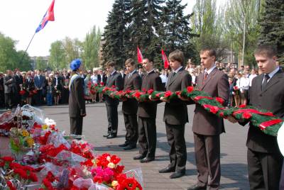 Памятная плита в честь Героя (крайняя справа) на Аллее Героев в г.Енакиево.