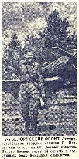 Заметка о капитане В.И.Истрашкине в газете "Красная звезда" от 16 июля 1944 г., №168 (видимо, ошибочно указан как гвардии капитан, т.к. 979-го иап гвардейским не был).