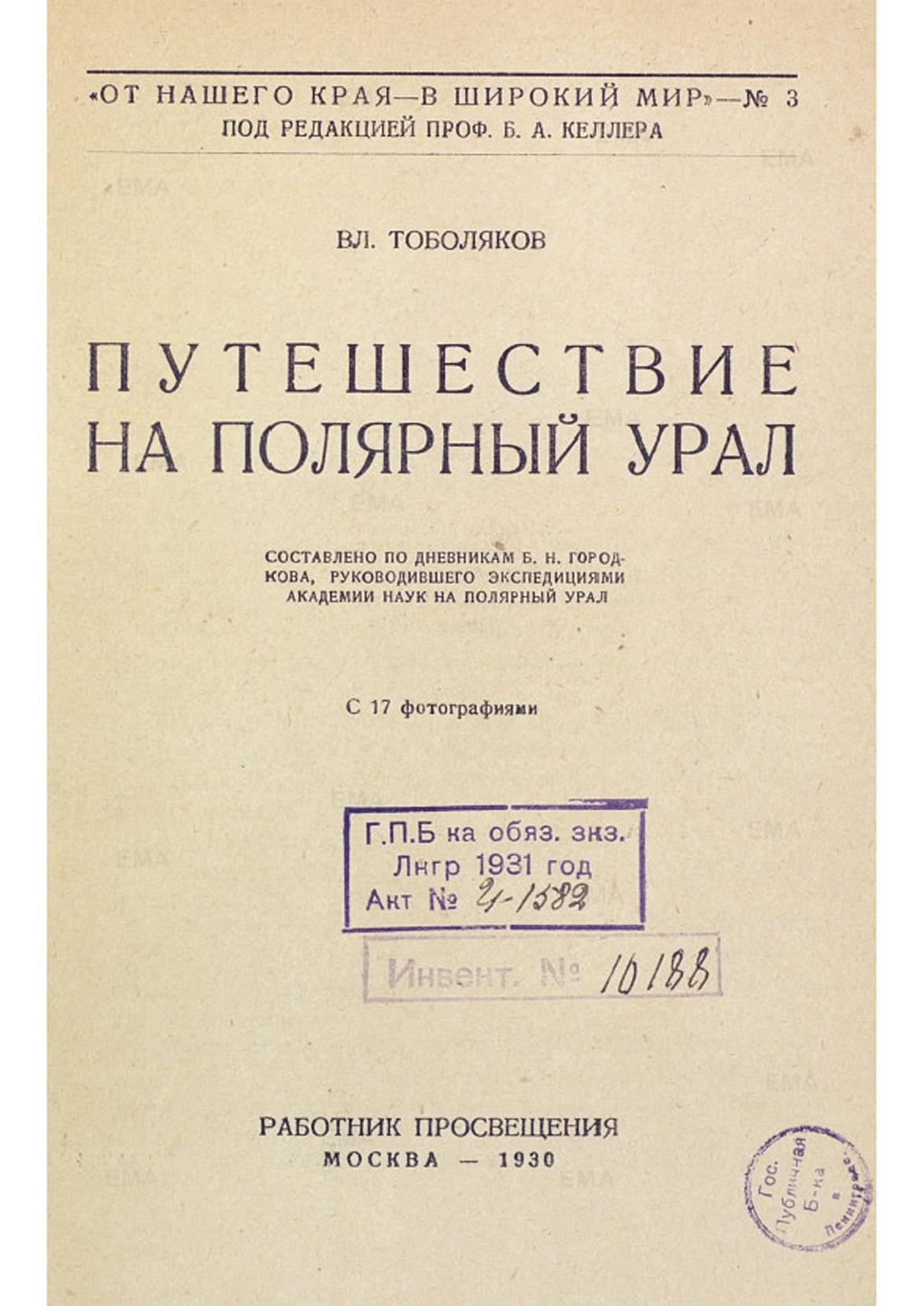 Б. Н. Городков — крупный геоботаник и географ, выдающийся исследователь Крайнего Севера Советского Союза. За 40 лет своей научной деятельности он посетил и изучил многие районы Арктики и севера Советского Союза от Кольского полуострова до Чукотки, а также и острова Северного Ледовитого океана.
