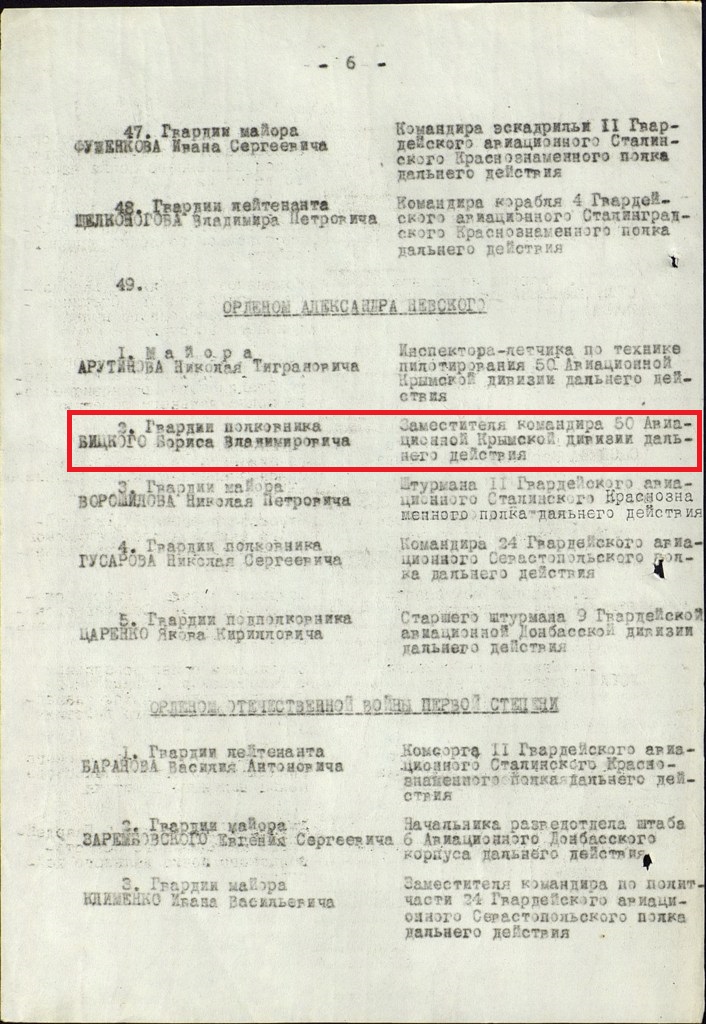 В 1944 – заместитель командира 50 Крымской авиационной дивизии Дальнего Действия (аддд).