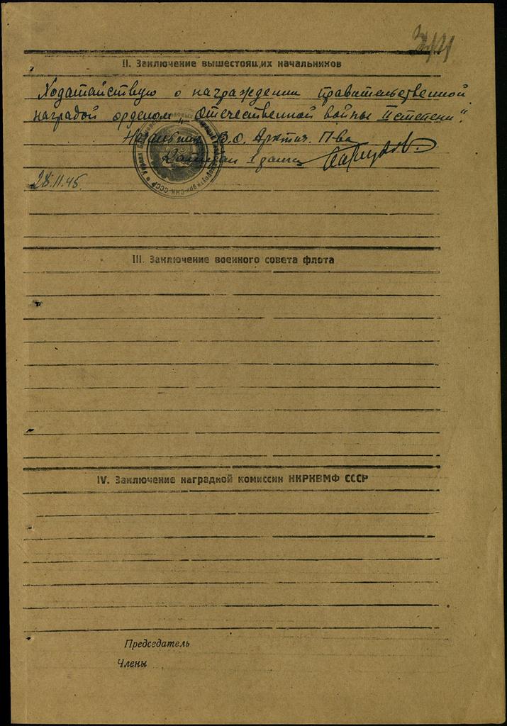 Место службы: ледокол "И. Сталин" ВО Арктич. п-во