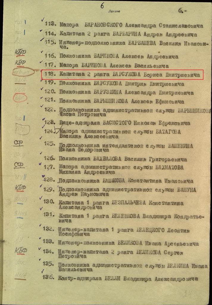 1942-XI-1943 Нач. Отд. конвойн. службы Штаб БВФ БВФ