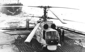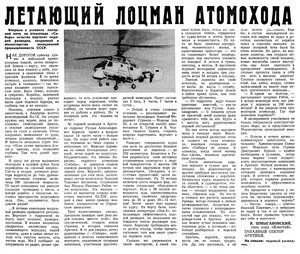 Впервые в условиях полярной ночи на атомоходе «Сибирь» испытан вертолет ледовой разведки, созданный в Министерстве авиационной промышленности СССР.