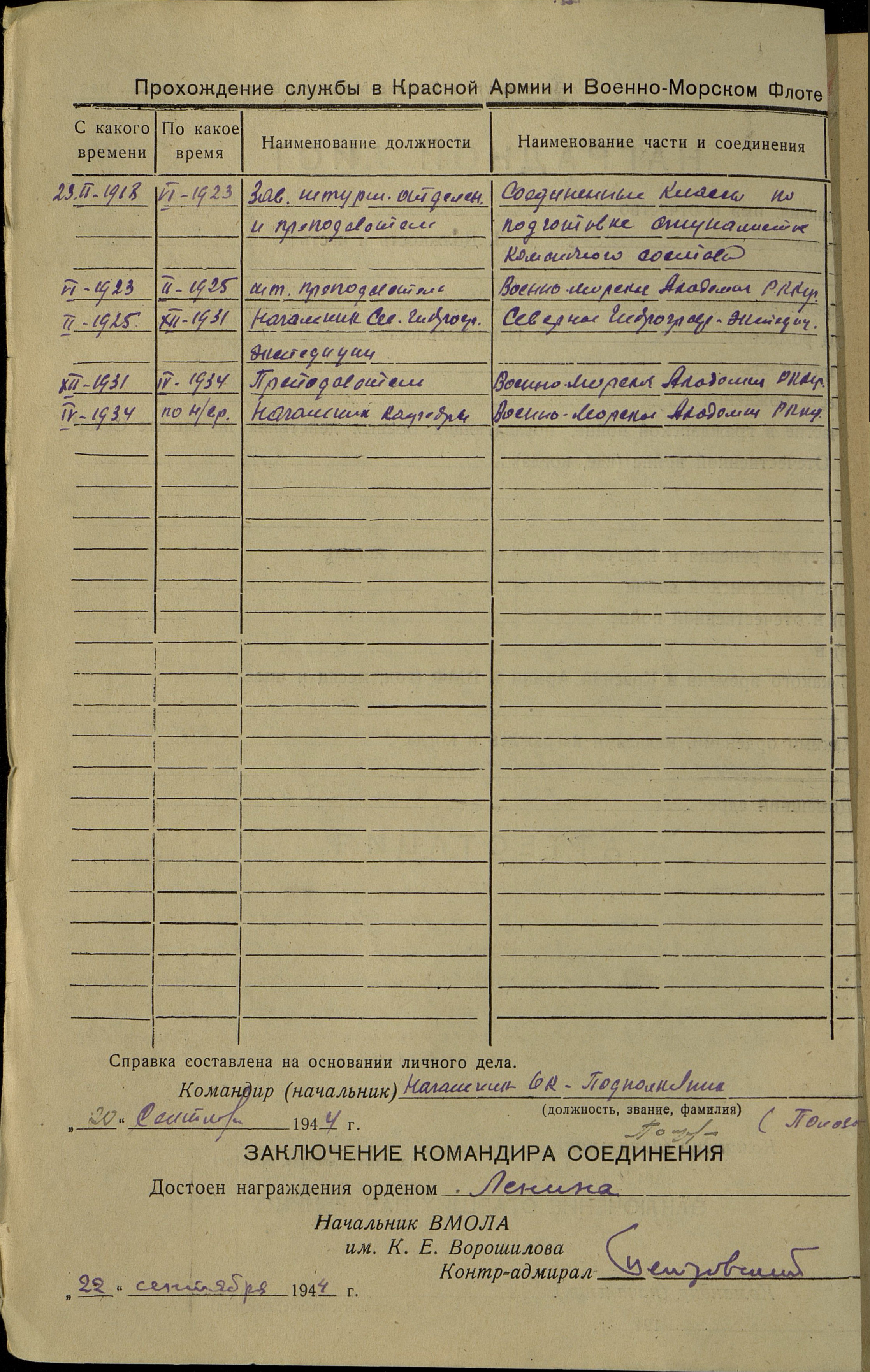 Место службы: мор. ВАк им. К.Е. Ворошилова