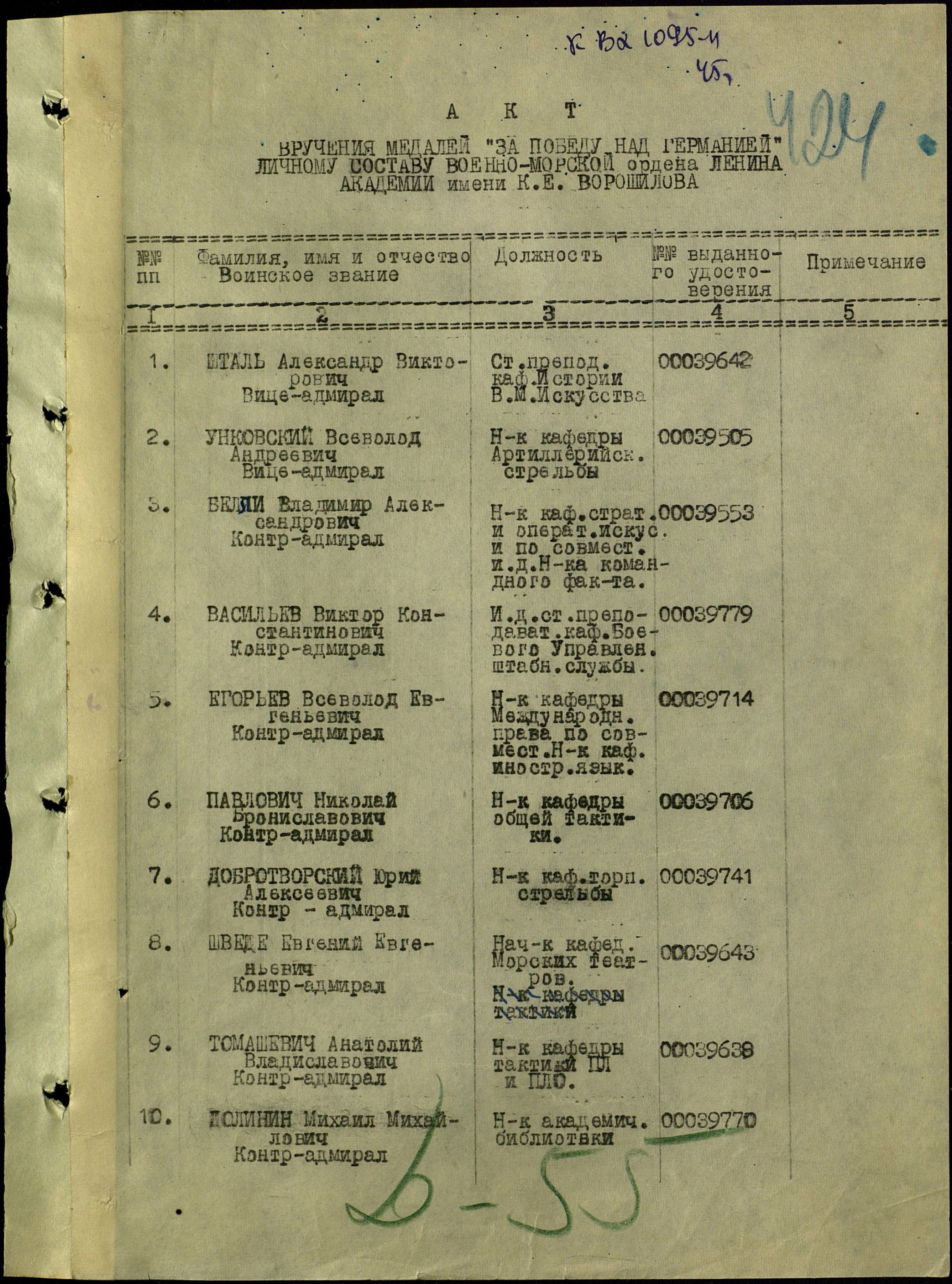 Акт от 17.10.1945 ВМАк им. К.Е. Ворошилова